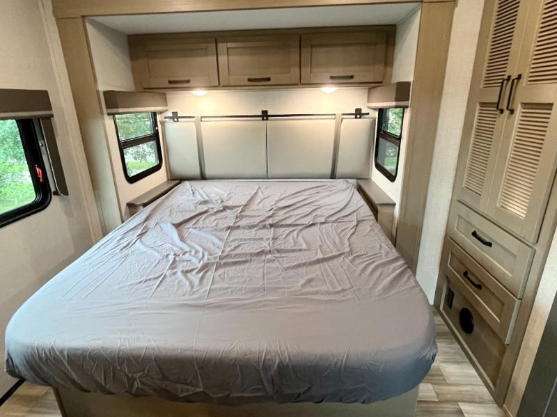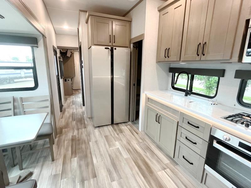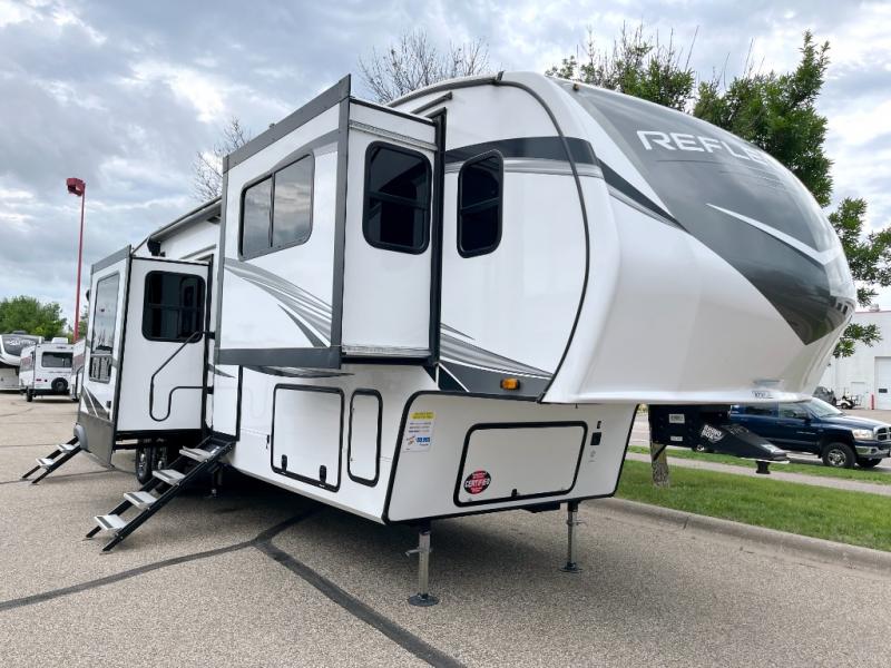 Each Reflection fifth wheel and travel trailer by Grand Design is packed with luxury features for an overall better camping experience! The MORryde 3000CRE suspension provides smooth towing to your destination and the durable construction materials mean you can enjoy your RV for years to come. These units include the Arctic 4-Seasons Protection Package that will extend your camping season thanks to the extreme temperature testing and maximum heating power. You will also appreciate the Solar Package that will allow you to do some off-grid camping and the Compass Connect system so you can control your RV's functions right from the palm of your hand. The interior of these travel trailers and fifth wheels are designed to make you feel at home with residential cabinetry, solid surface countertops, blackout roller shades, a spacious shower with a glass door, residential bedrooms, and the list goes on! Choose a Reflection today and start a new adventure tomorrow!