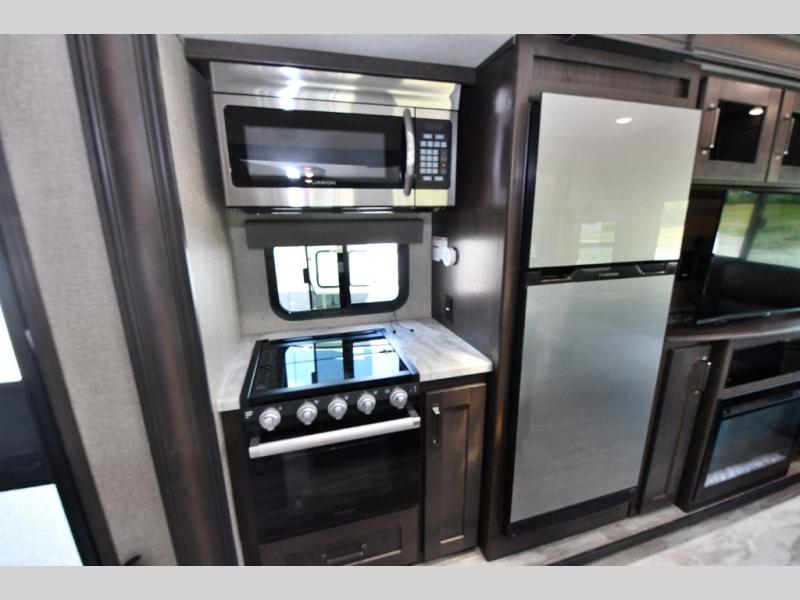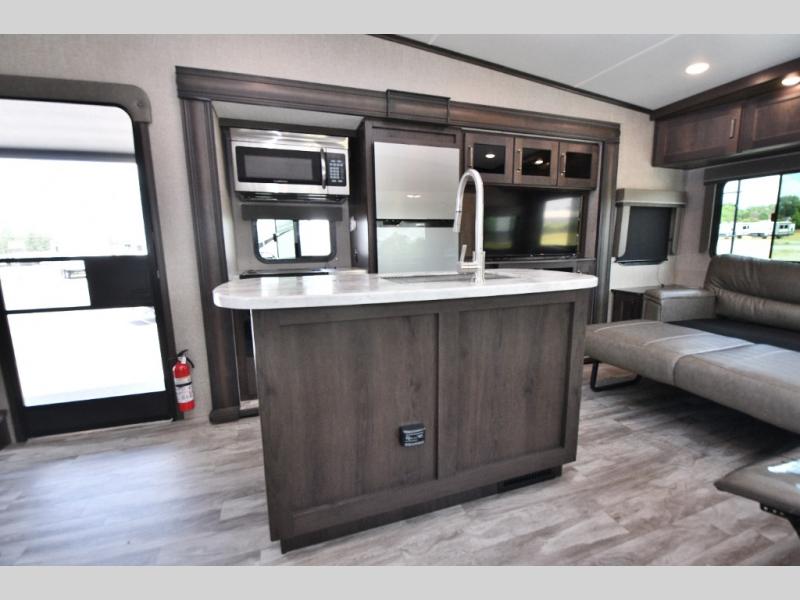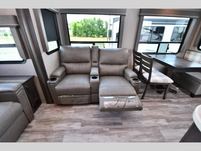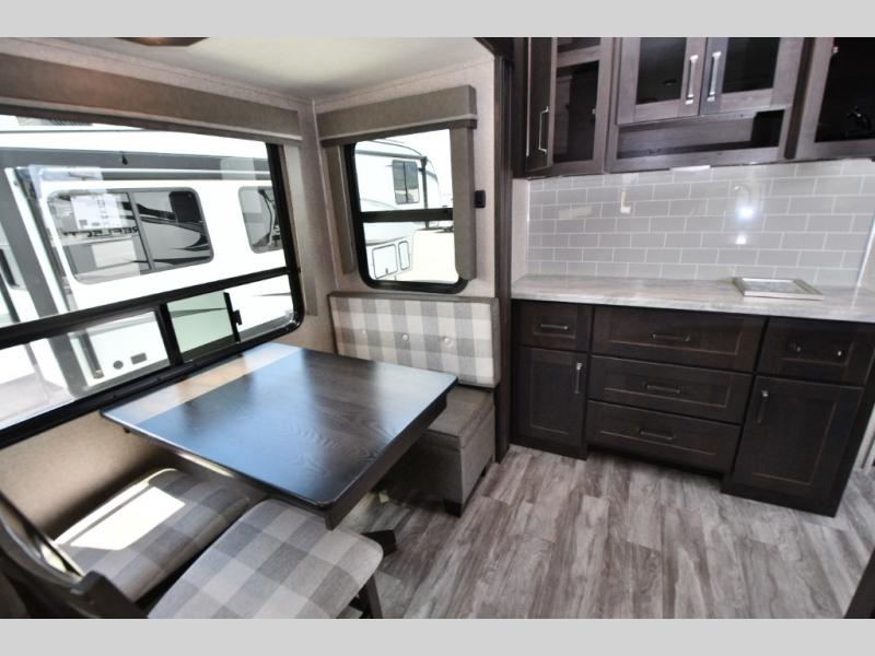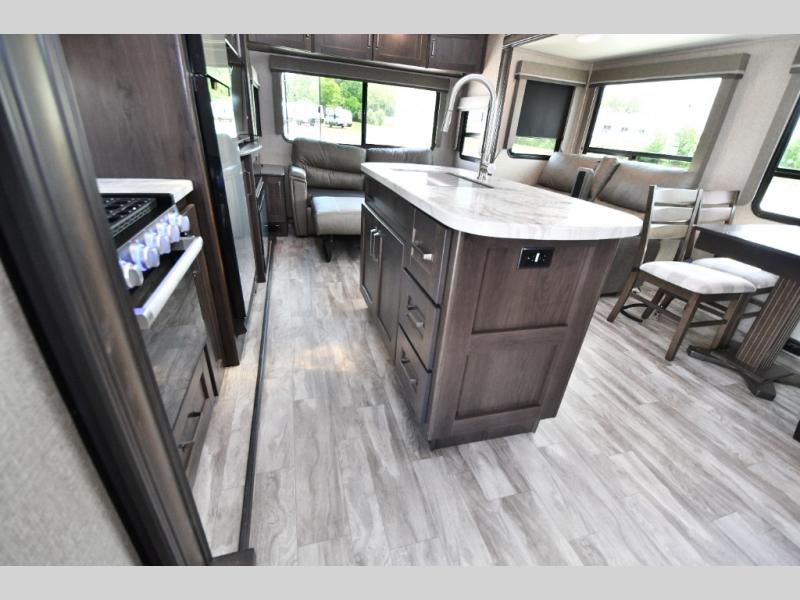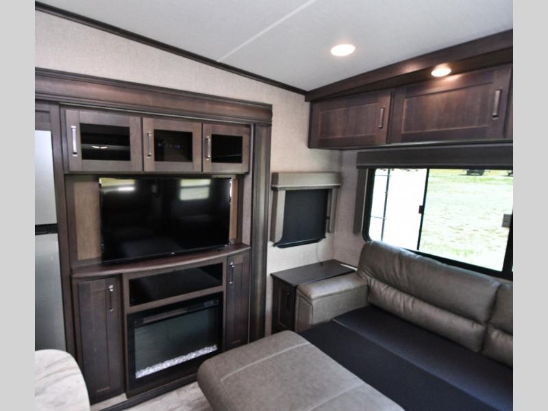 Step inside the pre-owned 2023 Grand Design Reflection M-280RS and discover a fifth wheel built for relaxation and fun. The main living area is enhanced by opposing slides, creating a spacious kitchen and lounge space. The kitchen features a large island, hutch with extra counter and storage space, and a 10 cu. ft. refrigerator to store meals and snacks. Guests can sleep comfortably on the tri-fold sofa, and the theatre seating provides prime viewing of the 40" LED HDTV and fireplace below. The full bathroom with walk-in shower makes mornings simple, and the front bedroom with a queen bed provides a restful retreat after a day of adventure.