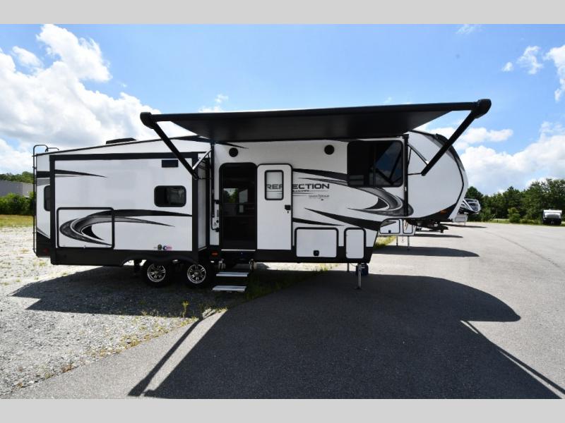 Enjoy off-grid adventures with a roof-mounted solar panel and heated pass-through storage in this Reflection 280RS fifth wheel.