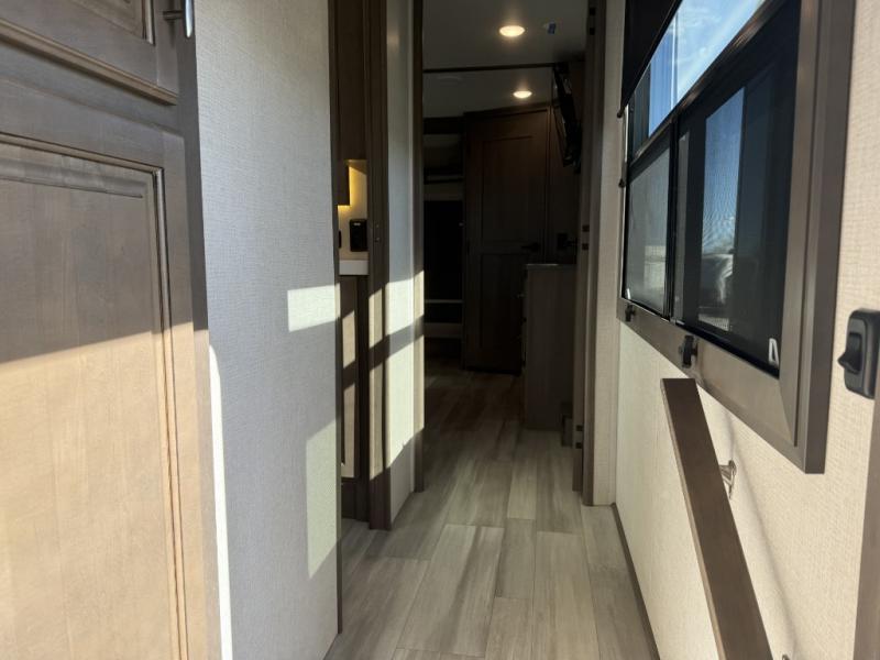 Each Solitude fifth wheel by Grand Design features a 101" wide-body construction, heavy duty 7,000 lb. axles, frameless tinted windows, and high-gloss gel coat sidewalls. You can camp year around thanks to the Weather-Tek Package that includes a 35K BTU high-capacity furnace, an all-in-one enclosed and heated utility center, and a fully enclosed underbelly with heated tanks and storage. Inside, you'll love the premium roller shades, hardwood cabinet doors, solid surface countertops and sinks, plus residential finishes throughout to make you truly feel at home. Each model also includes a MORryde CRE3000 suspension system, self adjusting brakes, and a MORryde pin box that will provide smooth towing from home to campground. Affordable luxury is possible with the Solitude fifth wheels; choose yours today!
