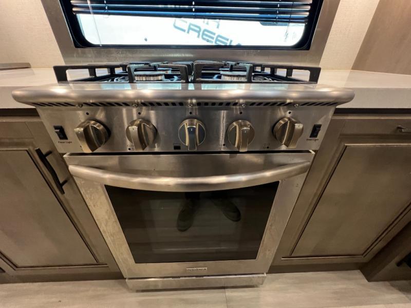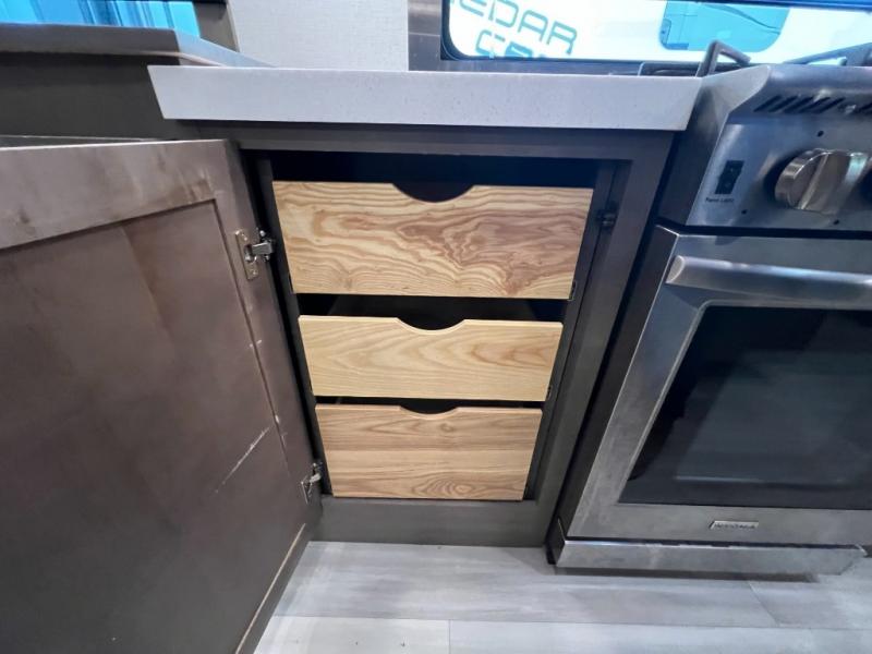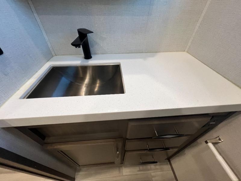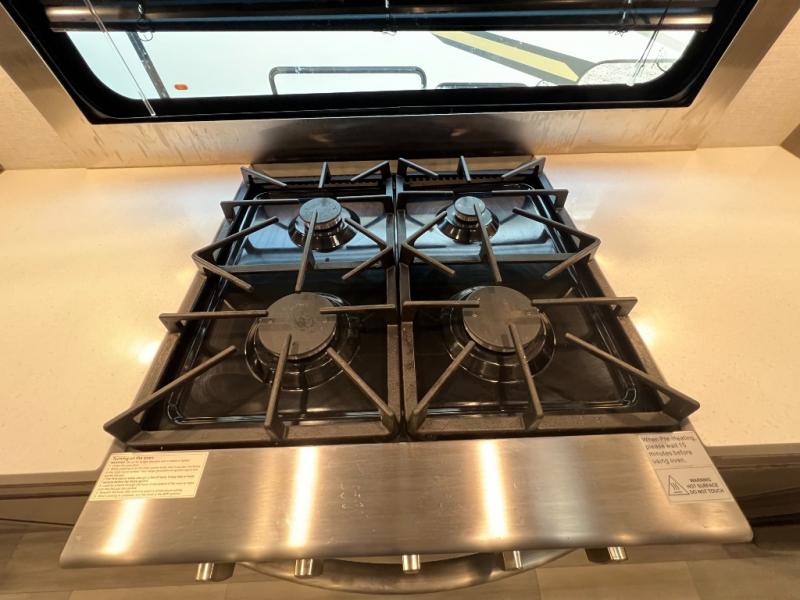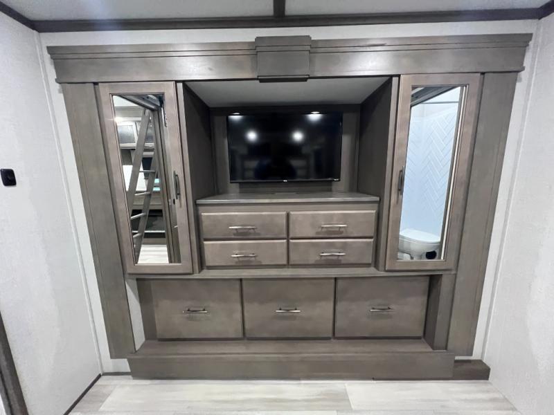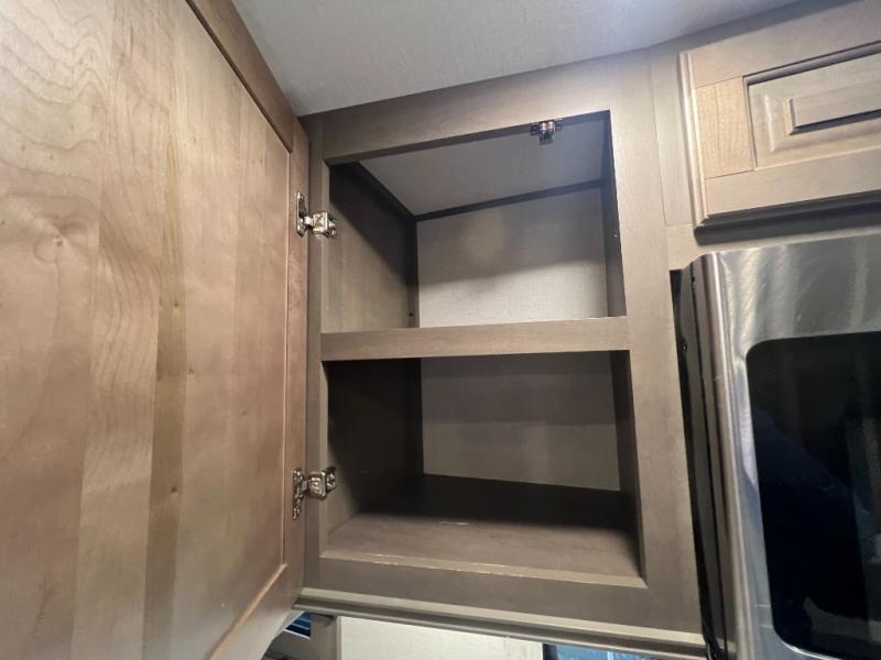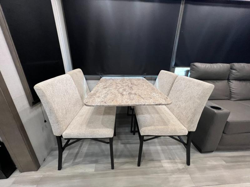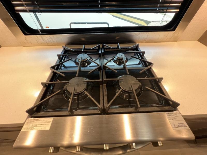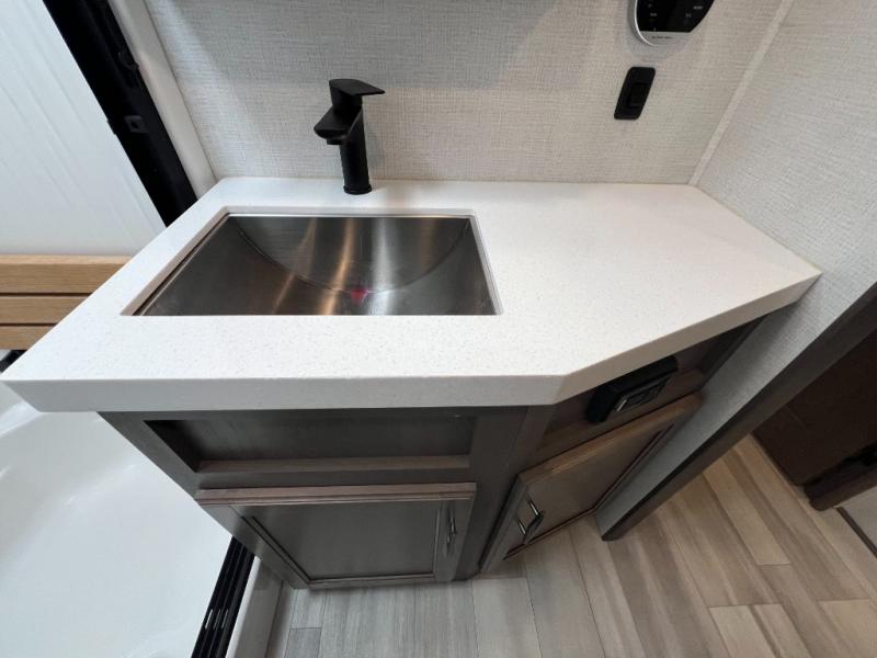Each Solitude fifth wheel by Grand Design features a 101" wide-body construction, heavy duty 7,000 lb. axles, frameless tinted windows, and high-gloss gel coat sidewalls. You can camp year around thanks to the Weather-Tek Package that includes a 35K BTU high-capacity furnace, an all-in-one enclosed and heated utility center, and a fully enclosed underbelly with heated tanks and storage. Inside, you'll love the premium roller shades, hardwood cabinet doors, solid surface countertops and sinks, plus residential finishes throughout to make you truly feel at home. Each model also includes a MORryde CRE3000 suspension system, self adjusting brakes, and a MORryde pin box that will provide smooth towing from home to campground. Affordable luxury is possible with the Solitude fifth wheels; choose yours today!
