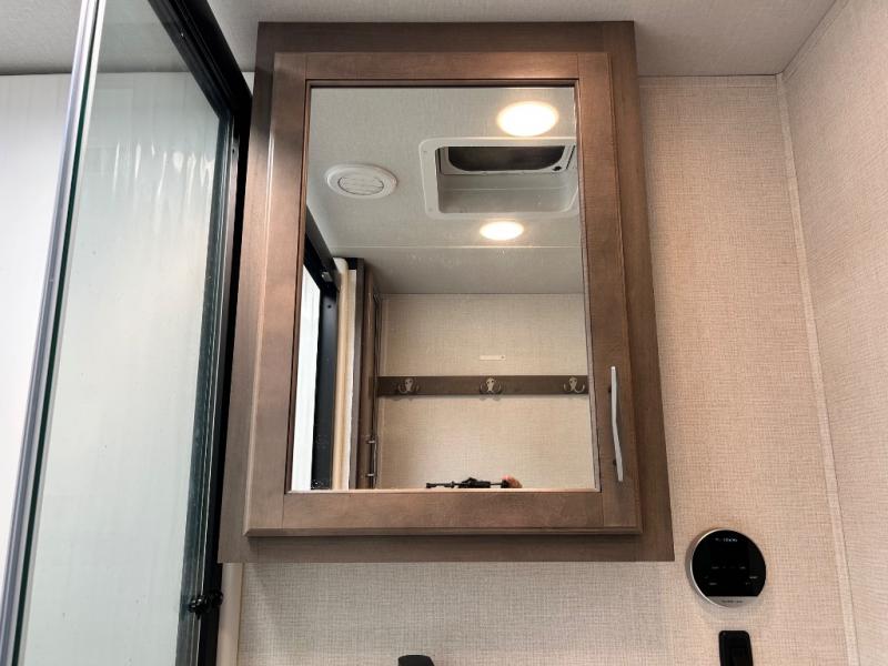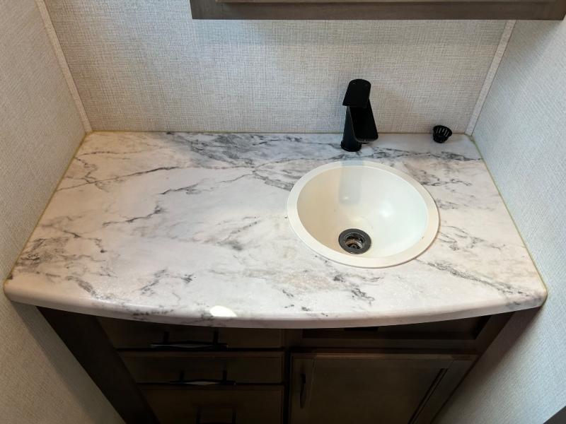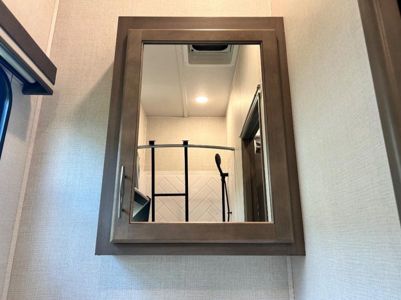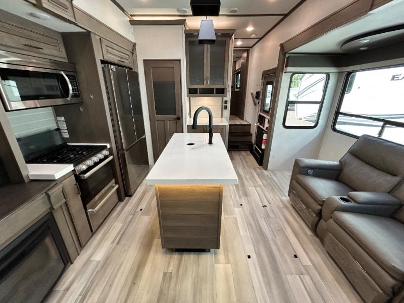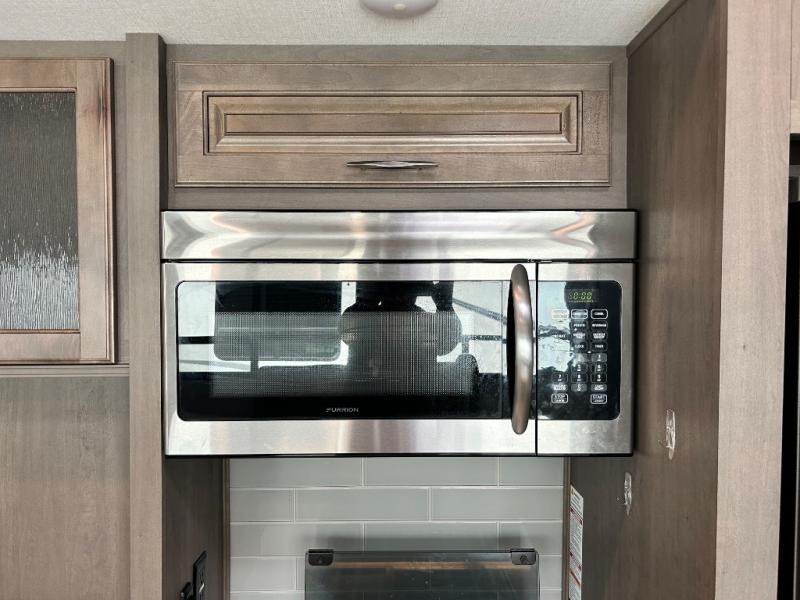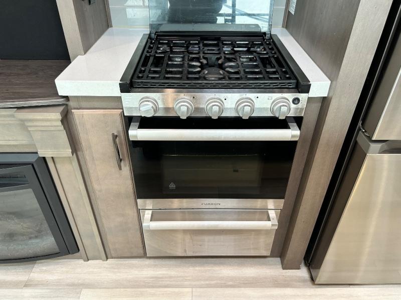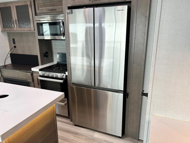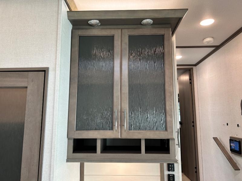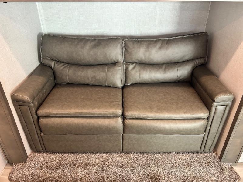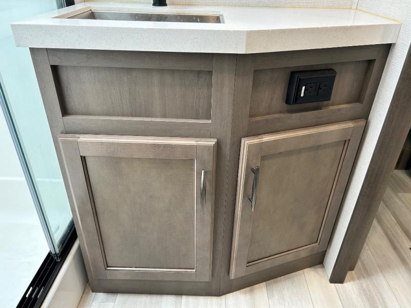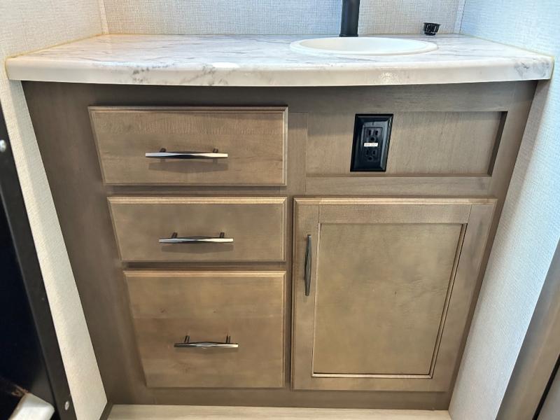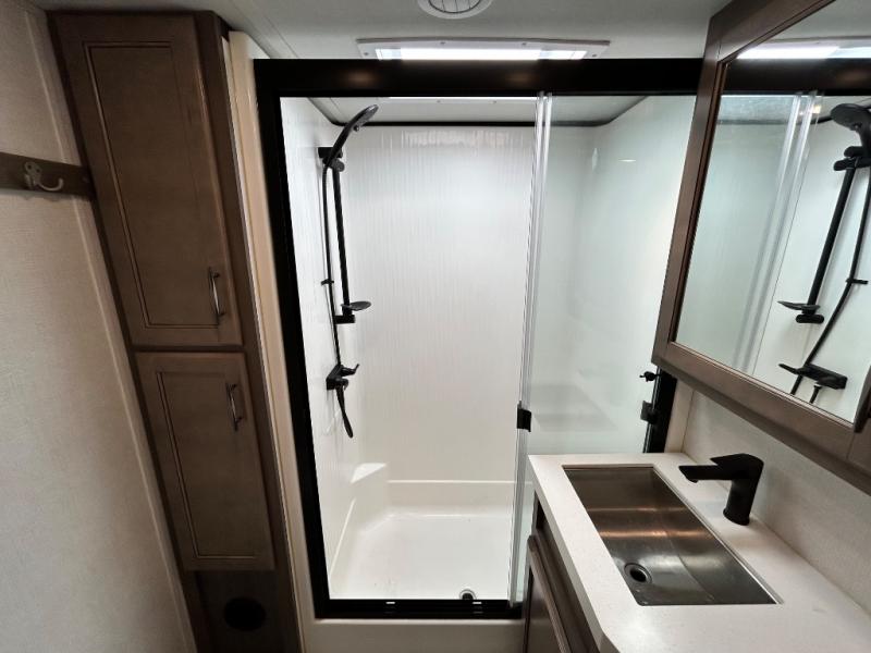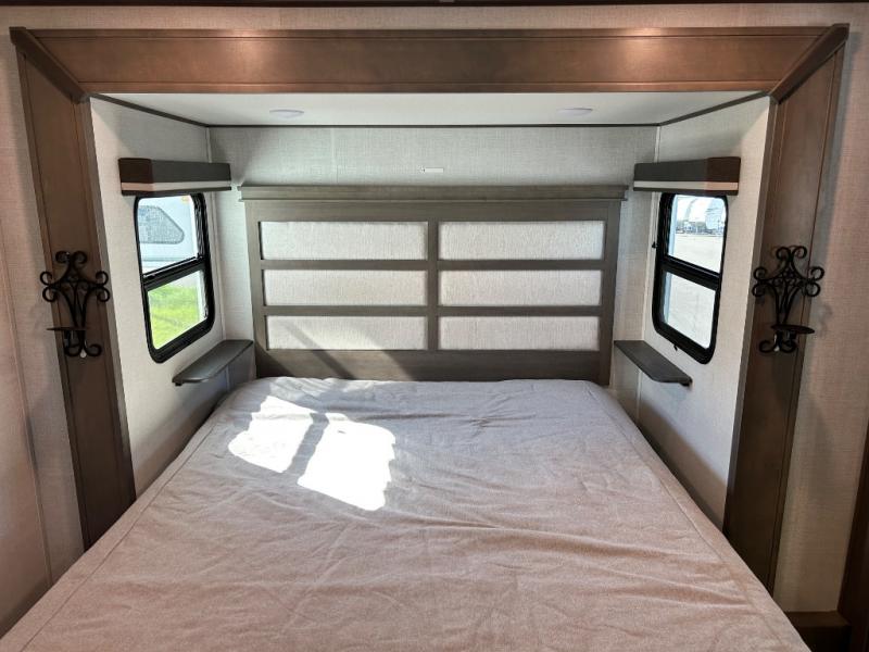 With any Solitude S-Class fifth wheel by Grand Design you will appreciate the Max Built Construction Package that features a 101" wide-body, gel coat exterior sidewalls, heavy-duty 7,000 lb. axles, plus many more durable construction materials. The self-adjusting brakes and the MORryde CRE3000 suspension system will provide a smooth towing experience, and each model includes heavy duty 17.5" H-rated tires with NitroFill. Some of the features you are sure to love are included in the Residential Living Package, like the solid surface countertops and sink covers, the hardwood cabinet doors, the night stands with USB ports, and the Rockford Fosgate stereo entertainment system with HDMI and App controls. These fifth wheels are extended-stay approved thanks to the Weather-Tek Package with a 35,000 BTU high-capacity furnace, the Stealth A/C system, and many high-end residential finishes to make you feel like you taken home with you!