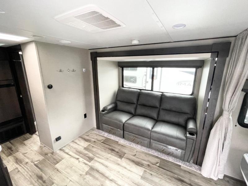 The customer-focused, quality-built Transcend Xplor travel trailers by Grand Design are your ticket to fun and adventure. The upgraded Strongwall metal exterior will hold up through the years, and the heated and enclosed underbelly means you can camp in all seasons. You will appreciate the power tongue jack when it comes time to set up, as well as the all-in-one utility center and the detachable power cord with an LED light. These models include many outlets throughout, USB ports to charge your gadgets, and an AM/FM/Bluetooth stereo with exterior speakers to keep you entertained. The interior of the Transcend Xplor will have you feeling right at home with upgraded residential furniture, a large, solid bedroom door, and residential countertops, and the list goes on!
