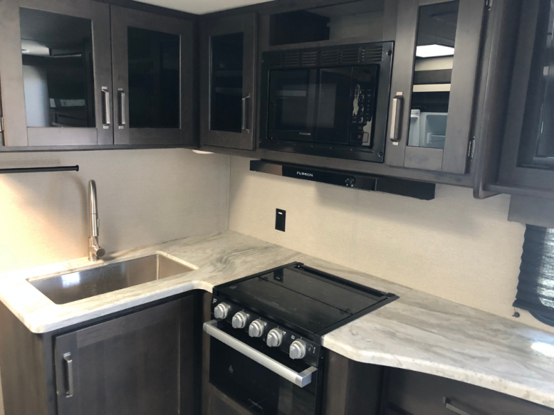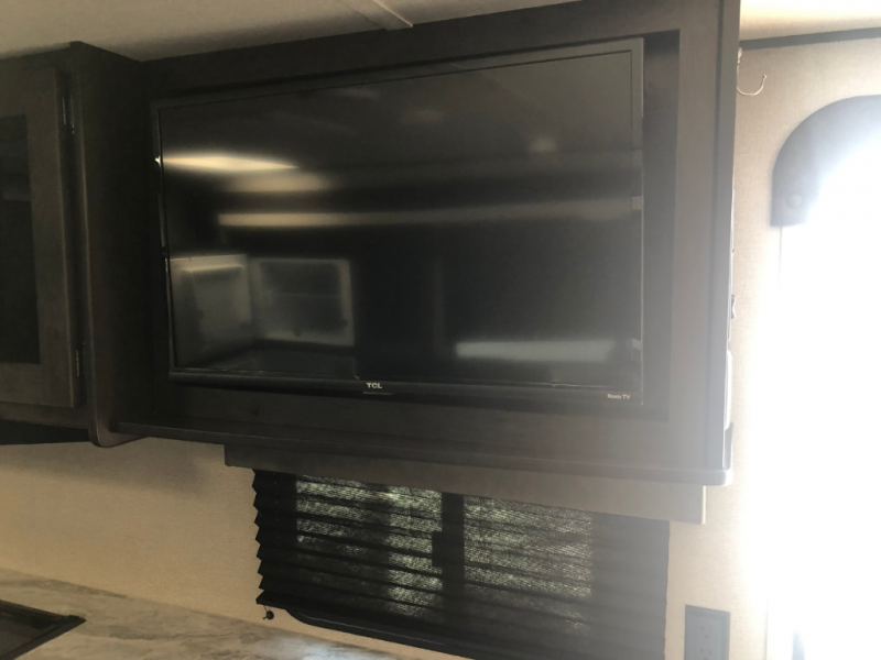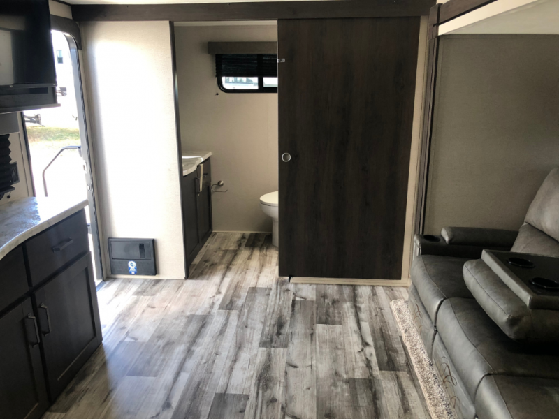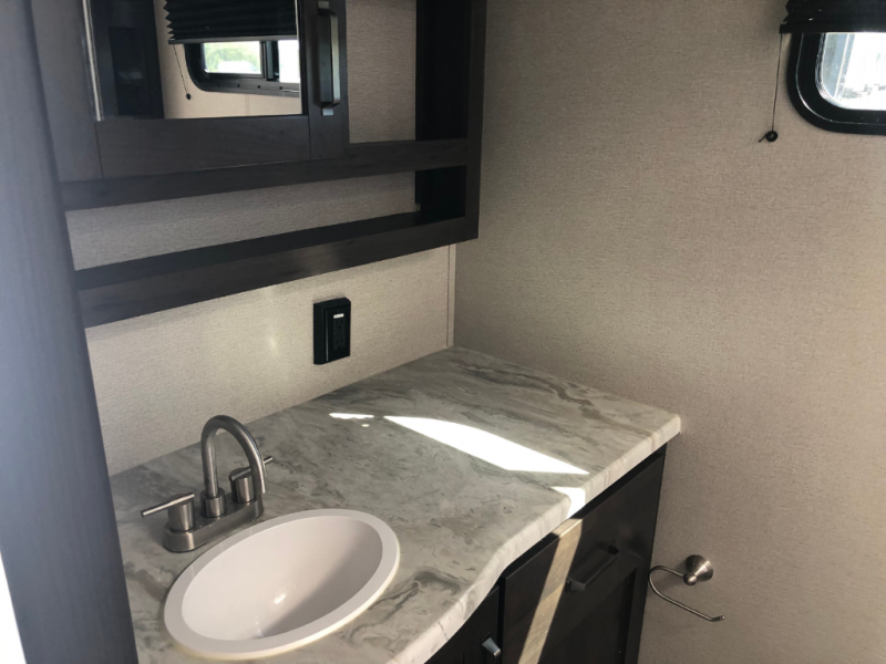 This travel trailer will feel just like home with its private bedroom that includes a queen bed, overhead storage, and TV prep if you choose to bring along your own television. The full rear bath is both spacious and tucked away for privacy, and the main living area includes a slide out for added space. Here, you'll enjoy dining around the U-shaped dinette or relaxing on the optional theater seats if you go that way. Whether you're cooking dinner in the spacious kitchen, relaxing under the 17' power awning, or cleaning up in the walk-in shower, you will always have a good time in this travel trailer!