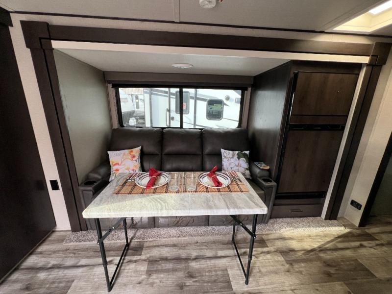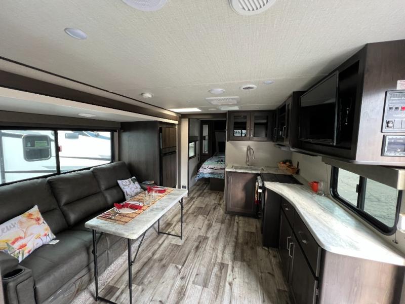 Step into comfort and versatility with this 2023 Grand Design Transcend Xplor 221RB, a travel trailer that thoughtfully balances livability and adventure. The rear bath floorplan opens up space and convenience, giving you a full bathroom with plenty of storage, and the central kitchen offers solid counter space, a residential-style sink, and a three-burner range — perfect for home-cooked meals on the road. Relax in the main living area with a slide-out dinette and jackknife sofa, both positioned to make the most of your floor space and easy conversation. Whether you’re enjoying a quiet morning coffee or gathering for game night, this layout feels open and inviting.