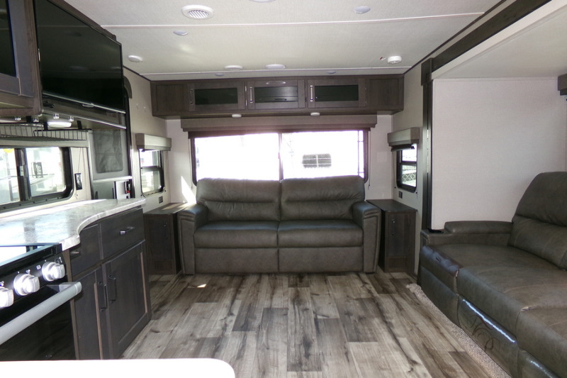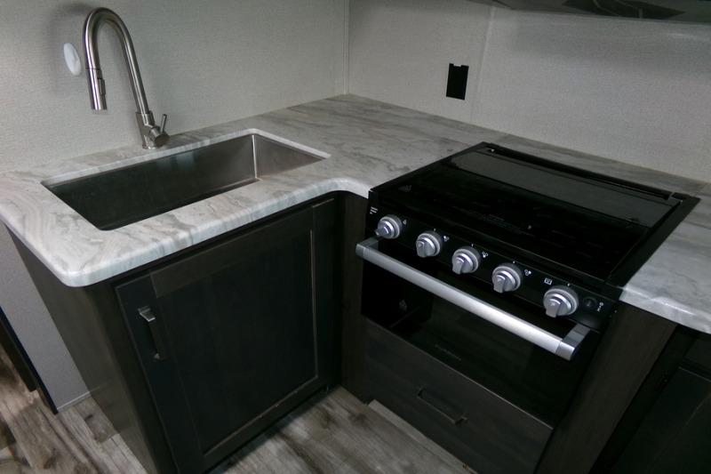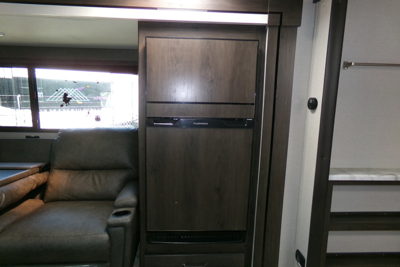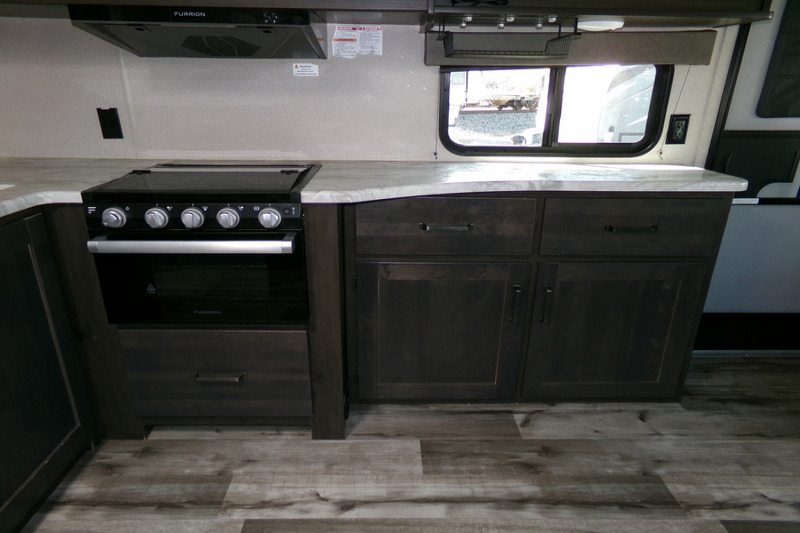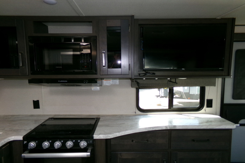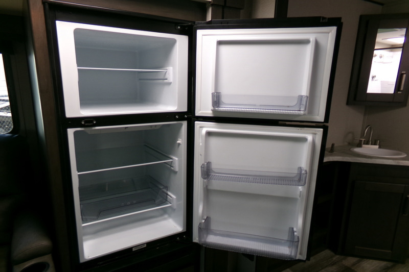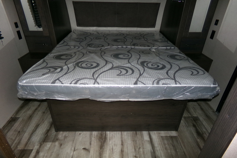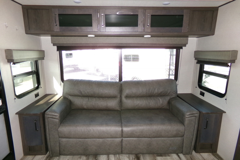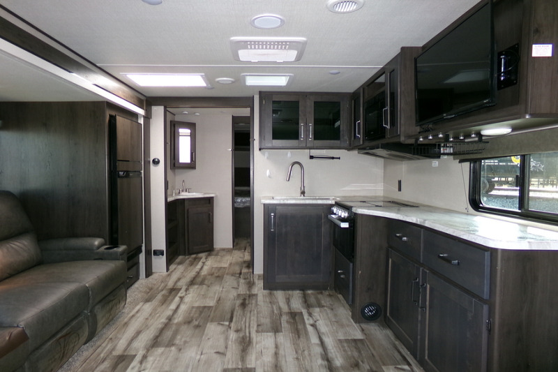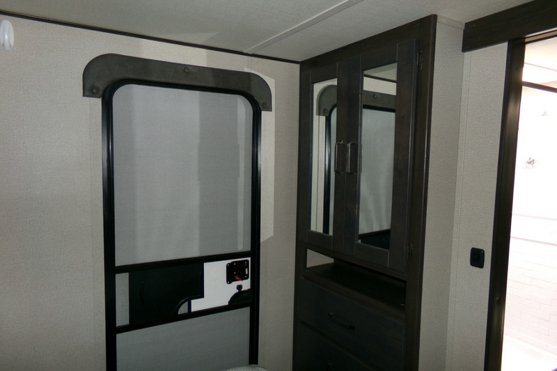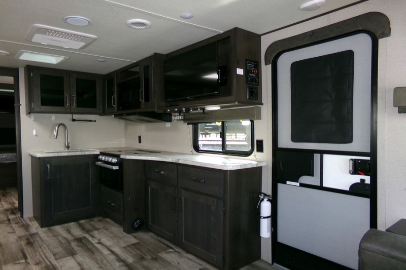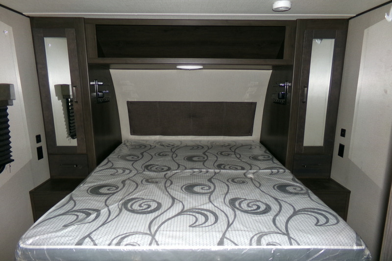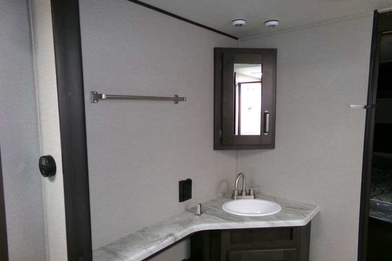 This dual-entry travel trailer will allow you to enjoy weekend getaways in complete comfort. The rear living area includes a U-shaped dinette and a tri-fold sofa that will be perfect when guests stay over. It will be so easy to fill the dog's food bowl with a convenient pet drawer under the refrigerator, and you'll find plenty of storage throughout this model for all your belongings. The walk-through bath leads to the front master bedroom where you'll find a queen bed, overhead storage, and TV prep if you choose to add your own television.