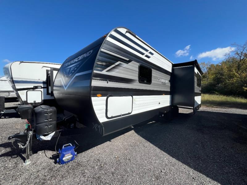 The customer-focused, quality-built Transcend Xplor travel trailers by Grand Design are your ticket to fun and adventure. The upgraded Strongwall metal exterior will hold up through the years, and the heated and enclosed underbelly means you can camp in all seasons. You will appreciate the power tongue jack when it comes time to set up, as well as the all-in-one utility center and the detachable power cord with an LED light. These models include many outlets throughout, USB ports to charge your gadgets, and an AM/FM/Bluetooth stereo with exterior speakers to keep you entertained. The interior of the Transcend Xplor will have you feeling right at home with upgraded residential furniture, a large, solid bedroom door, and residential countertops, and the list goes on!