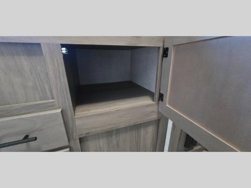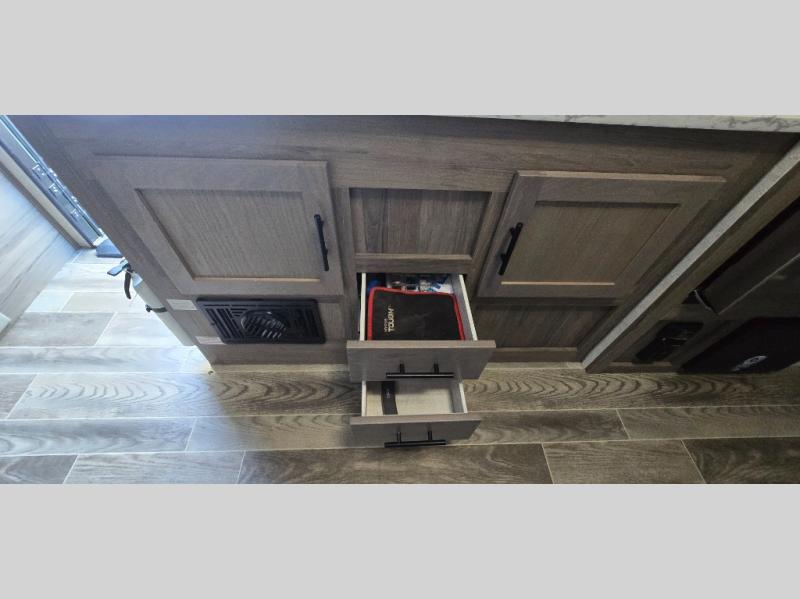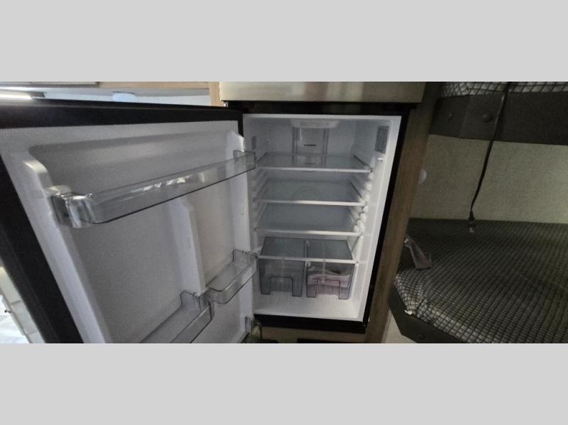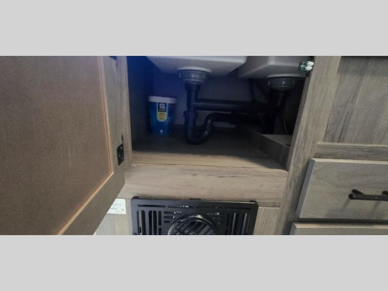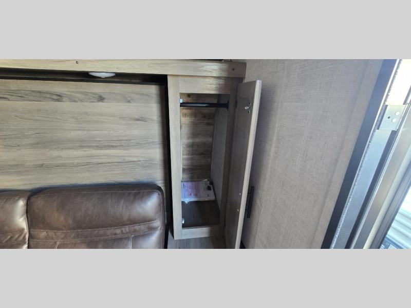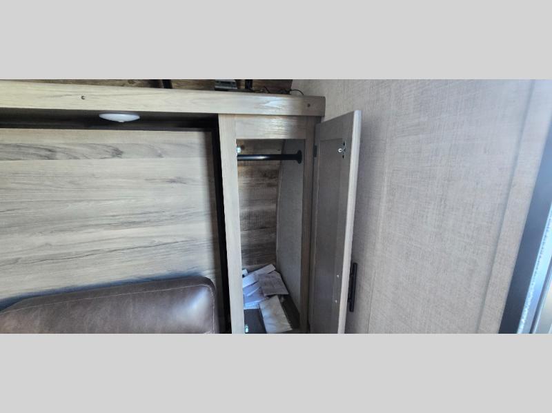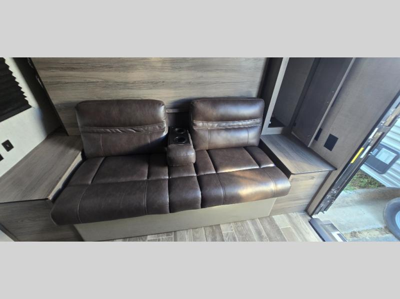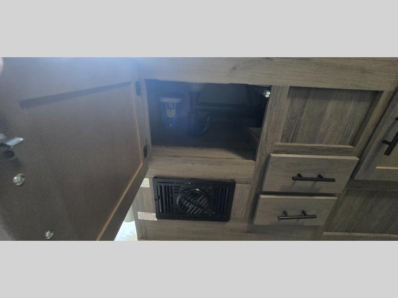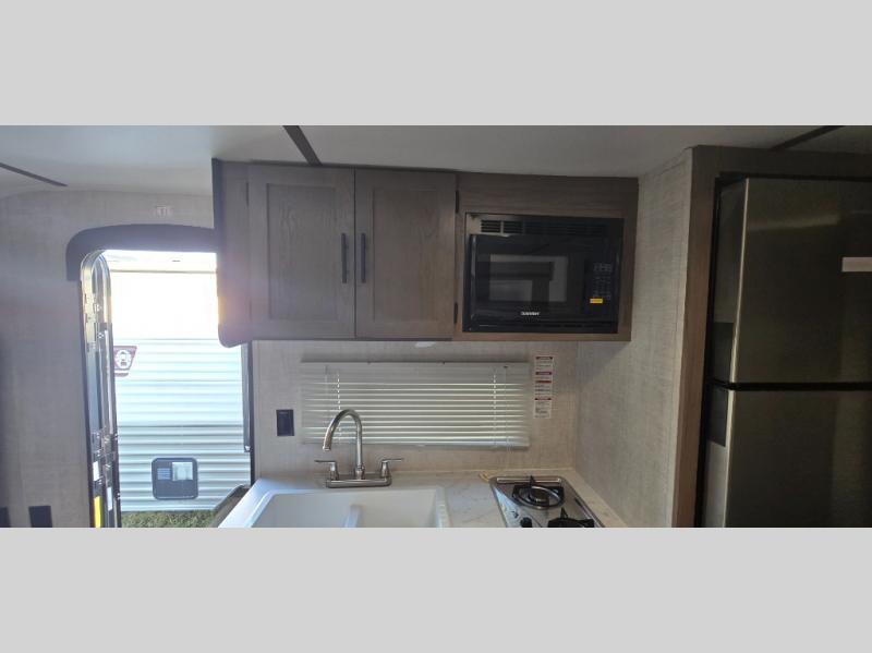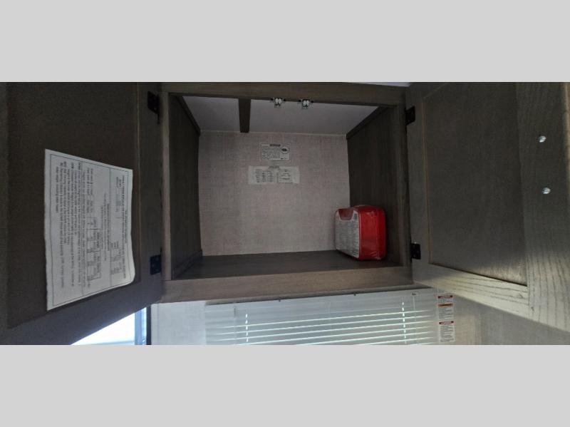 Are you searching for a travel trailer with more space and a larger sleeping capacity? Check out this unit with a U-shaped dinette slide out, double-size bunks, plus a versatile Murphy bed! The chef can whip up a hearty meal on the two burner cooktop, or use the outside 1/2 kitchen. The full bath inside will allow you to stay clean throughout your camping trip, and you'll find plenty of storage space, including a wardrobe for clothes.