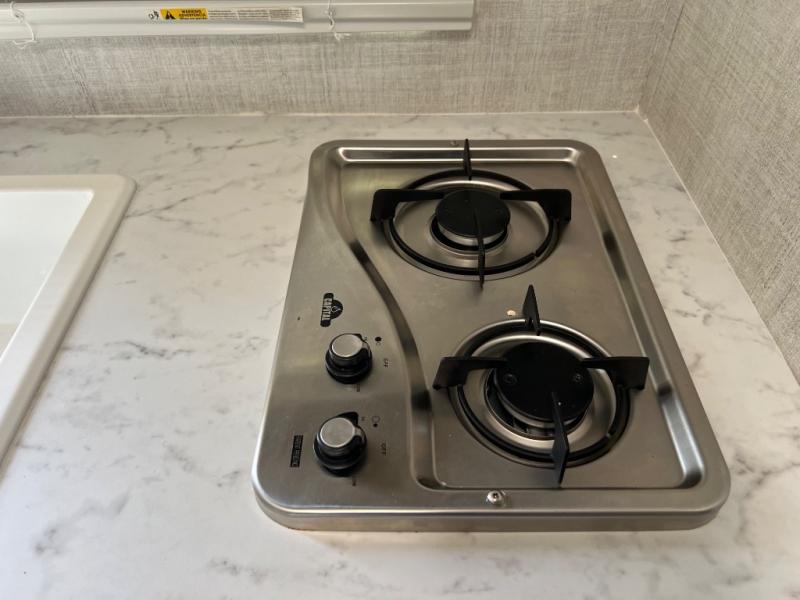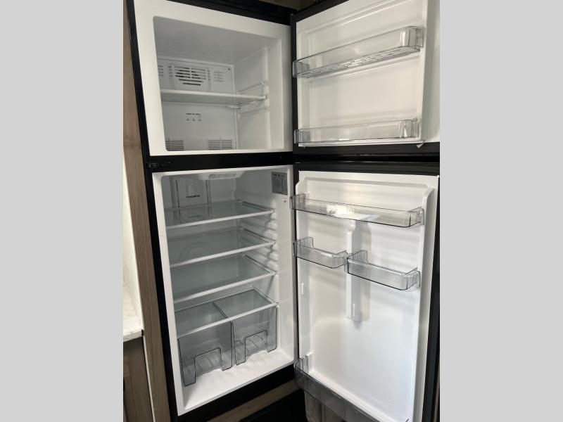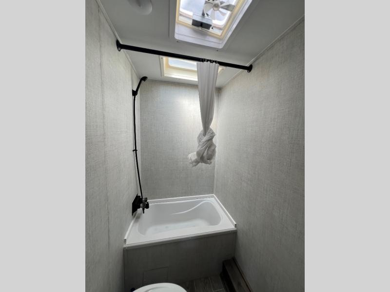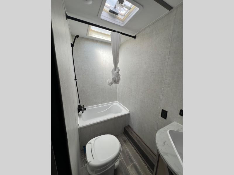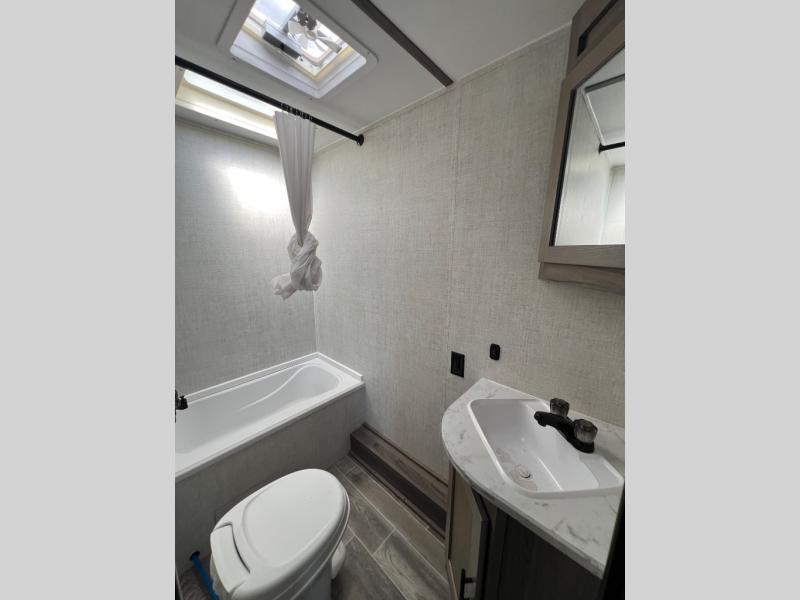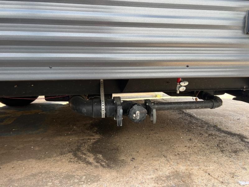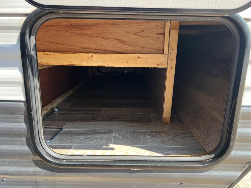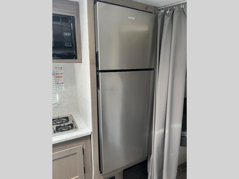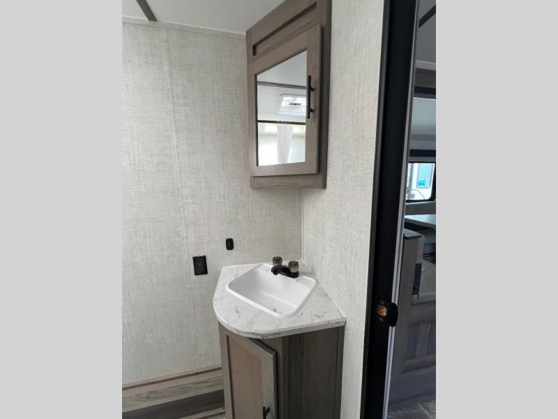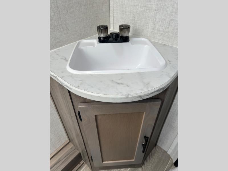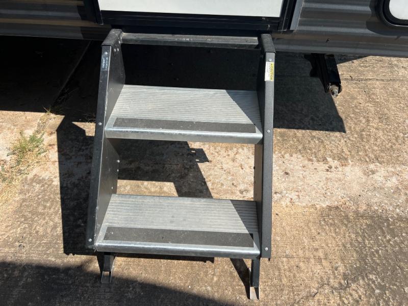 Are you searching for a travel trailer with more space and a larger sleeping capacity? Check out this unit with a U-shaped dinette slide out, double-size bunks, plus a versatile Murphy bed! The chef can whip up a hearty meal on the two burner cooktop, or use the outside 1/2 kitchen. The full bath inside will allow you to stay clean throughout your camping trip, and you'll find plenty of storage space, including a wardrobe for clothes.