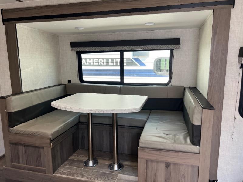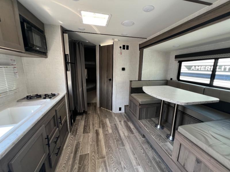 If you're looking for an affordable, lightweight travel trailer, you've found it in the Ameri-Lite Super Lite by Gulf Stream. These models may be lighter in weight, but they don't skimp out on comfortable features. Each unit includes high-performance vinyl flooring throughout, a white kitchen sink, craft-made cabinetry with designer pulls, plus fabric-wrapped box valances to make you feel right at home. The 16,000 BTU furnace and 13,500 BTU A/C will keep you comfortable in any season, and each model includes multiple USB ports for your tablet and phone and a 6' 8" ceiling height for added space. These models also include a 6-gallon gas DSI water heater, a central control panel to control your unit's functions, plus plenty of safety features you are sure to appreciate for your family. You can't go wrong with an Ameri-Lite Super Lite travel trailer.