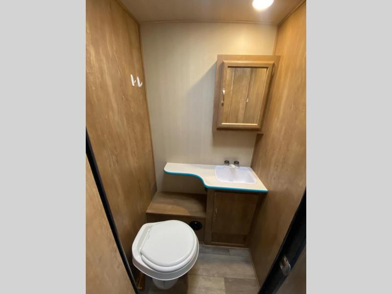 If you enjoy a more classic look for an RV, you'll love this Vintage Cruiser 19ERD. The rear booth dinette is surrounded by windows for bright, open views, and you'll find overhead storage here for dry goods or snacks. The chef of your group will have a two burner cooktop and a microwave oven to prepare meals, and you may want to add an optional 19" LED HDTV to keep your guests busy at the dinette while dinner is being made. The private toilet and sink is right across the hall from the 24" x 36" shower so two people can freshen up at once. How convenient! This model also features a semi-private front bedroom with a privacy curtain for your own space, plus an RV queen bed and dual shirt closets to keep your clothes tidy!