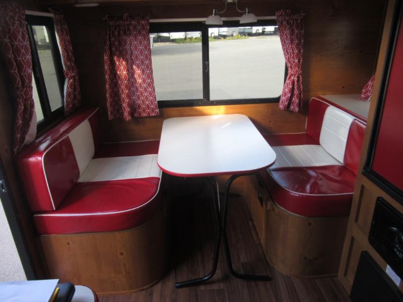 Convenient camping is found in this Vintage Cruiser that can sleep three each night. There is a 54" x 74" corner bed with storage for your bags, plus a wardrobe to keep your clothes wrinkle-free. You can prepare eggs and bacon on the two burner cooktop in the morning, and dine at the rear booth dinette. If the weather is nice, you may want to sit outdoors under the electric awning with LED lights. After you've spent the day outdoors you can freshen up in the full bath, then enjoy an evening of cards or sitting outdoors with a cold drink in hand.