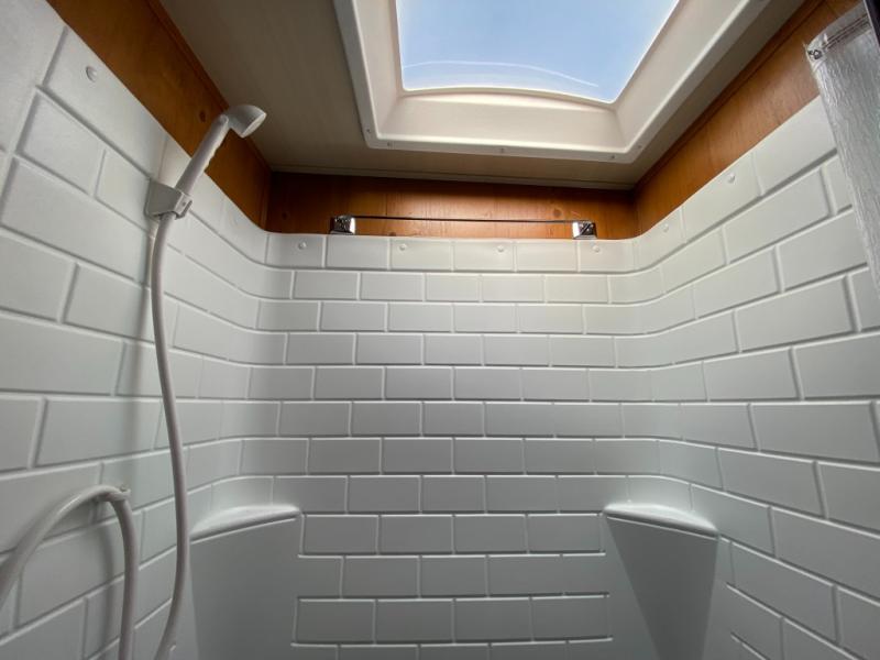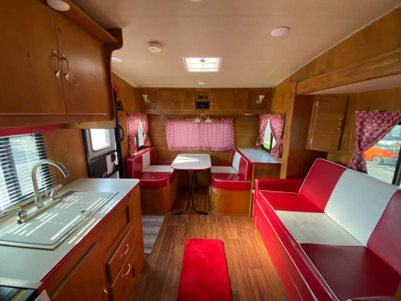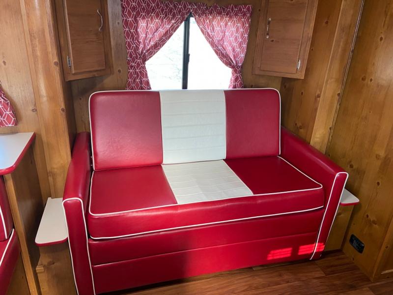Step into comfort with this classic travel trailer in tow. You will find a rear vintage booth dinette and a sofa slide out with end tables to set your drinks on, and an optional 19" LED HDTV can be added for entertainment. The kitchen is complete with a microwave oven, a two burner cooktop, plus overhead cabinets for your belongings. After a day outdoors, you can clean up in the 24" x 36" shower, and there is a private toilet and sink across the hall if someone needs to use it while you're cleaning up. In the front bedroom you'll find twin beds with an insert to convert them into a king-size bed, plus dual shirt closets. How convenient!