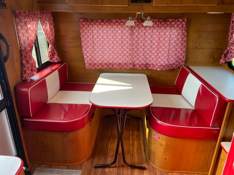 With any Vintage Cruiser by Gulf Stream you will be taken back to the fun of the 50's with vintage exterior graphics and classic interiors. Each model is constructed with a six-sided welded aluminum frame, vacuum bonded sidewalls with Azdel, and a vintage painted bumper you are sure to love. You may like to choose the optional "Woody" Package that includes an Oyster painted A-frame, Hickory Saddle floor vinyl, Southern Pine Sidewalls, and more rustic cabin features. The Vintage Cruiser travel trailers include high-performance vinyl flooring, LED interior ceiling lights, a seamless tub/shower surround, and vintage flat cabinet doors to name a few comforts you'll find throughout. These models are also prewired for roof A/C and come with a standard 20,000 BTU furnace or a 16,000 BTU furnace, depending on the model you choose. Nostalgia is waiting for you with a Vintage Cruiser!