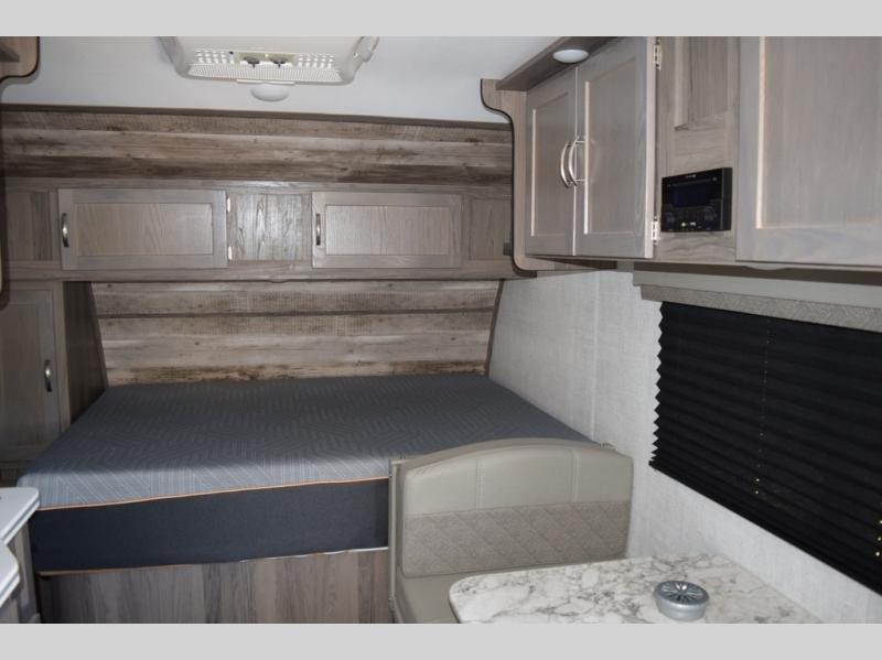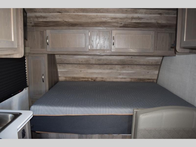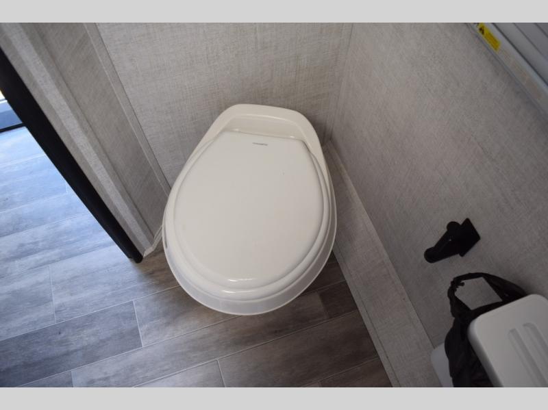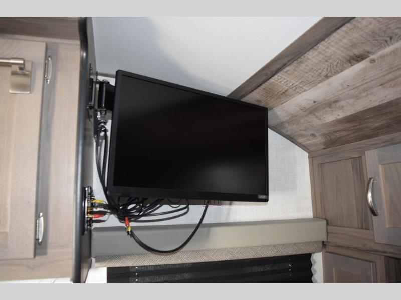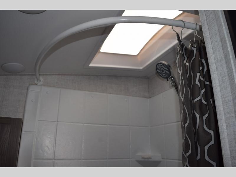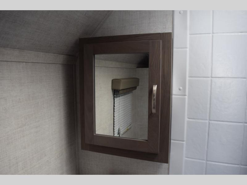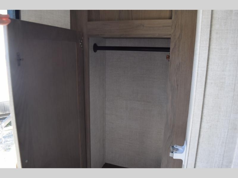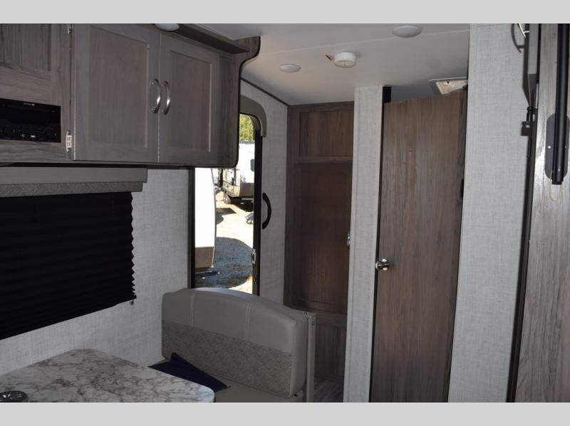 Enjoy a fun weekend camping with your spouse in this travel trailer! It features an entry closet with shelves next to the rear corner bathroom which has a radius shower and a high velocity fan to eliminate any unwanted steam. Across from the booth dinette is a TV mount location, a two burner cooktop, a sink with a designer stainless hi-access faucet, and a two door 5 cu. ft. single-door refrigerator to store your catch of the day. When you're ready to wind down a fun day, head to the front 54" x 74" bed to relax!
