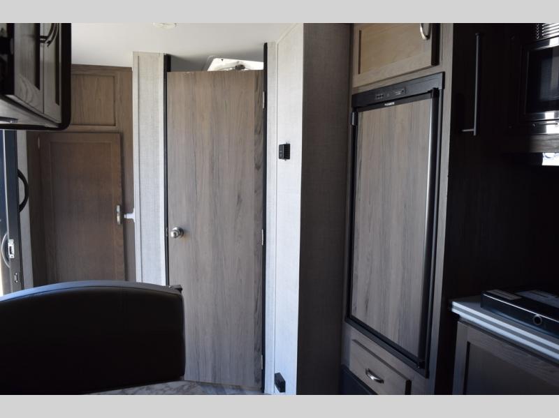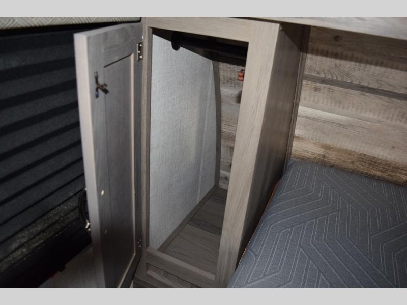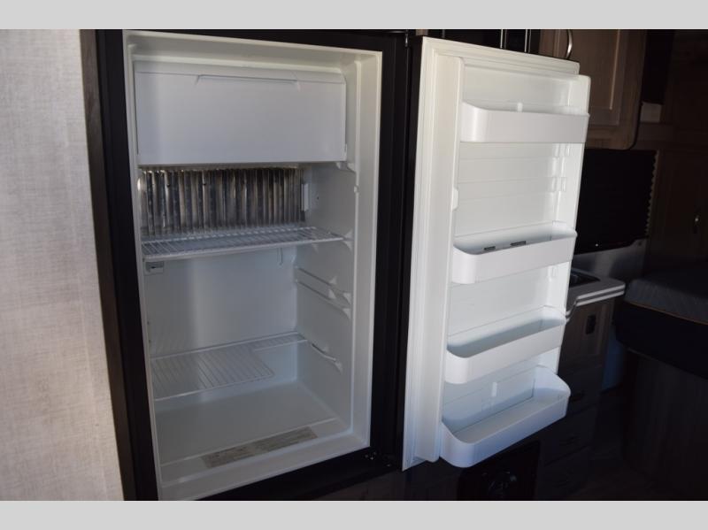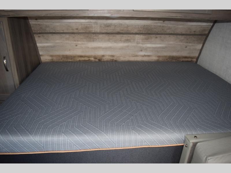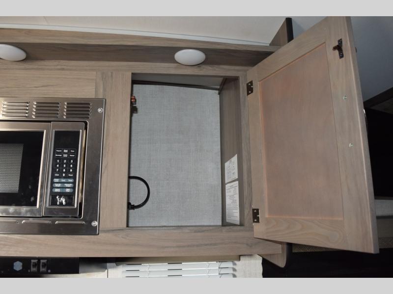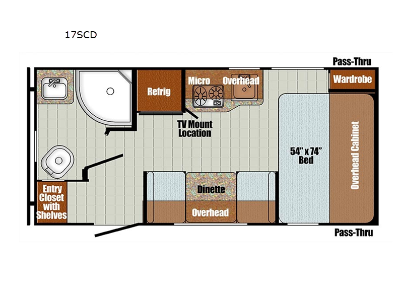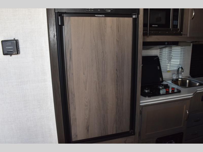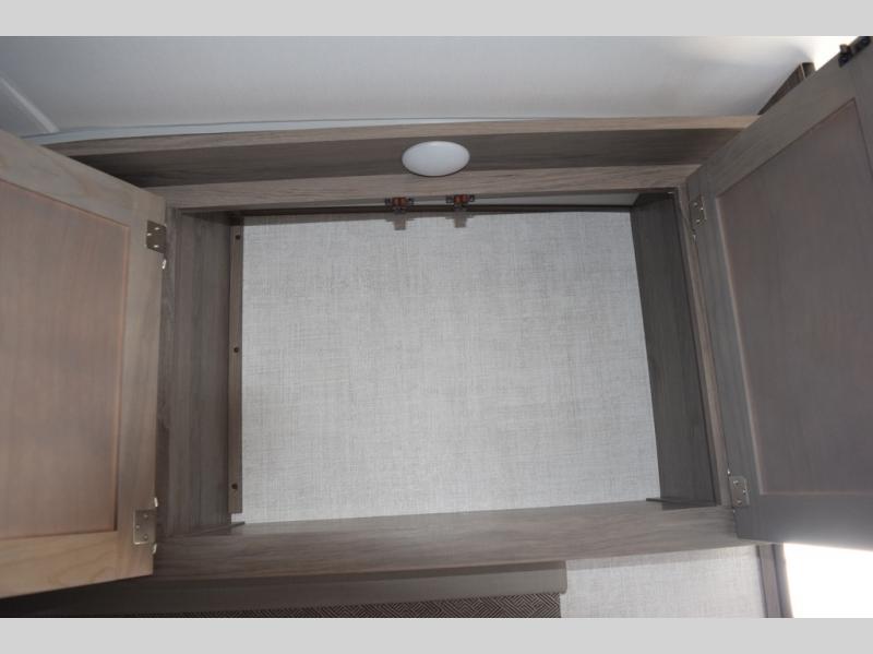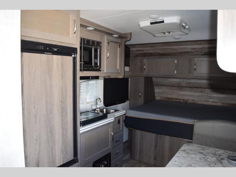 Enjoy a fun weekend camping with your spouse in this travel trailer! It features an entry closet with shelves next to the rear corner bathroom which has a radius shower and a high velocity fan to eliminate any unwanted steam. Across from the booth dinette is a TV mount location, a two burner cooktop, a sink with a designer stainless hi-access faucet, and a two door 5 cu. ft. single-door refrigerator to store your catch of the day. When you're ready to wind down a fun day, head to the front 54" x 74" bed to relax!