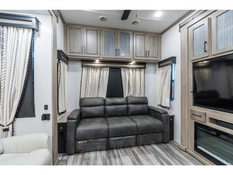 Used Heartland 5th Wheel for sale – 2023 Heartland Big Country 3500 is approximately 38’ 8” feet in length, 3 slides and features Lippert hydraulic jacks, aluminum wheels, dual A/C's, water manifold, patio awning, pass through storage, black tank flush, water filtration system, power electrical reel, exterior shower, solar, inverter, leather seating, combination washer/dryer, 7 foot ceiling, fireplace, hardwood cabinets, residential refrigerator with ice maker, 3 burner gas range with oven, king bed and much more. For more details on this unit, our full inventory, brochures, window stickers, videos, photos, and customer reviews, visit MHSRV.com or call 800-335-6054 for the Texas location or 334-288-0331 for our Alabama location. At Motor Home Specialist, we DO NOT charge any prep or orientation fees like you will find at other dealerships. Read Thousands upon Thousands of 5-Star Reviews at MHSRV.com and See What They Had to Say About Their Experience at Motor Home Specialist. WHY PAY MORE? WHY SETTLE FOR LESS?