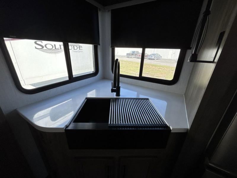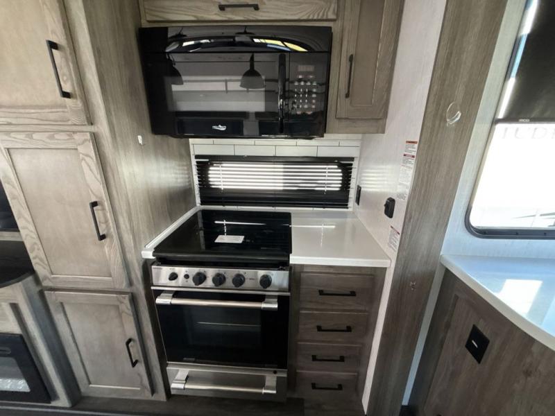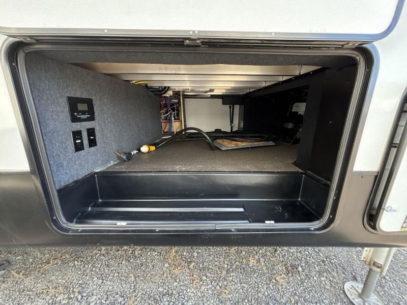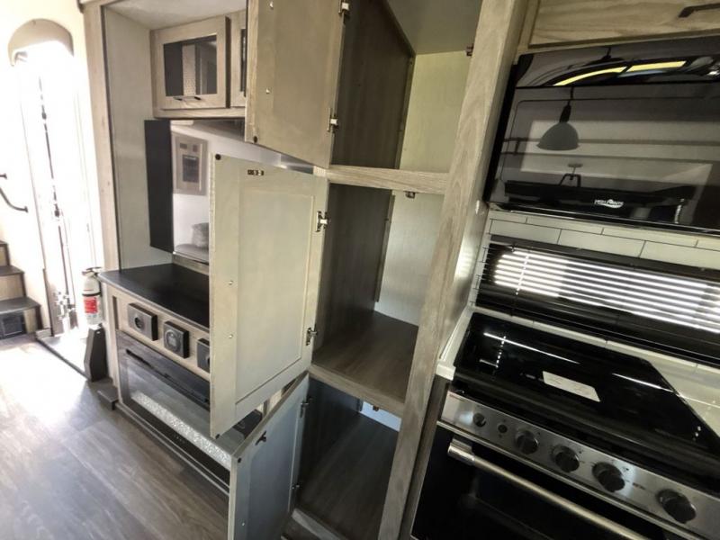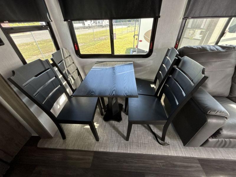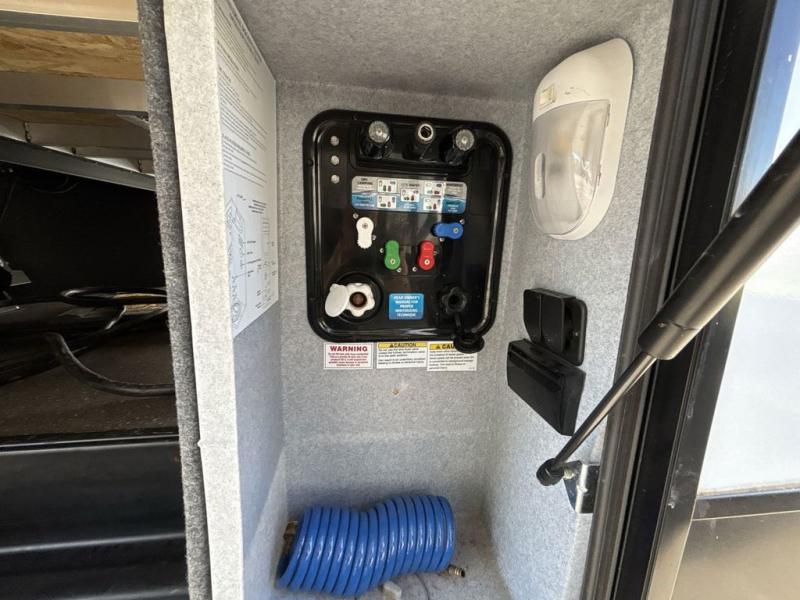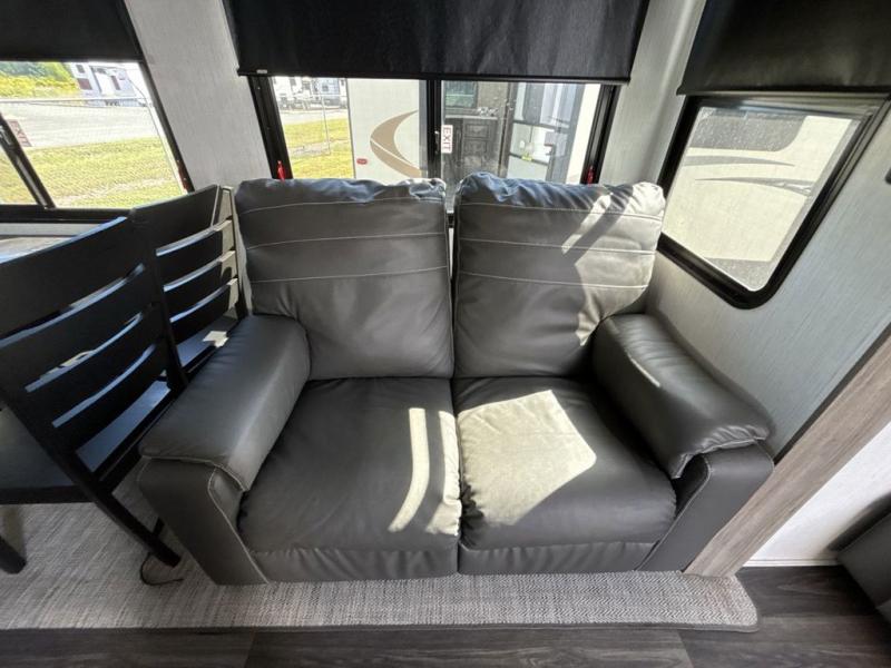 Start camping in true luxury with this fifth wheel! The chef will love cooking in the rear kitchen with a three burner cooktop, 22" stainless steel oven, residential French door 14.9 cu. ft. refrigerator, and a kitchen island. You could even prepare your delicious meals while breathing in some fresh air at the outdoor kitchen and stay protected by the 18' electric awning. Enjoy your meals at the free standing table then relax on one of the two sofas while the fire goes in the 40" electric fireplace with accent lighting. Clean up after a fun day at the beach in the full bathroom, then rest up on the king bed slide in the front private bedroom!
