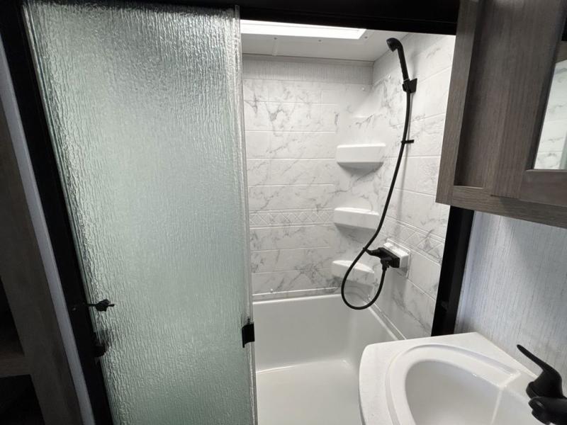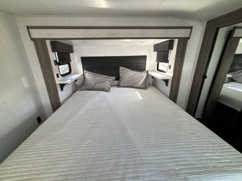 Come see how every one of these Heartland ElkRidge fifth wheels go the extra mile! They are built durable with double layer Azdel composite panels, TPO roofing material with 4" aluminum wrapped edge, and a 10" powder coated steel I-beam frame. With the six point hydraulic level-up and one touch auto level capabilities, you can set your unit up 50% faster than with the electric levelers. You will not only have an easier tow with the double 7,000 lb. Dexter EZ lube axles and MORryde 3000 suspension, but also a more secure ride with the upgraded Rota Flex pin box. The vortex dual ducted A/C system (15K main and 13.5K secondary) is H-ducted for high efficiency output to keep you cool even on the hottest summer days. Enjoy tech friendly features like USB charge ports, wireless charging stations, and Winegard Air+ with satellite and WiFi prep, as well as a master chef kitchen with abundant kitchen storage. Come find the right one for you today!