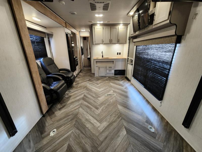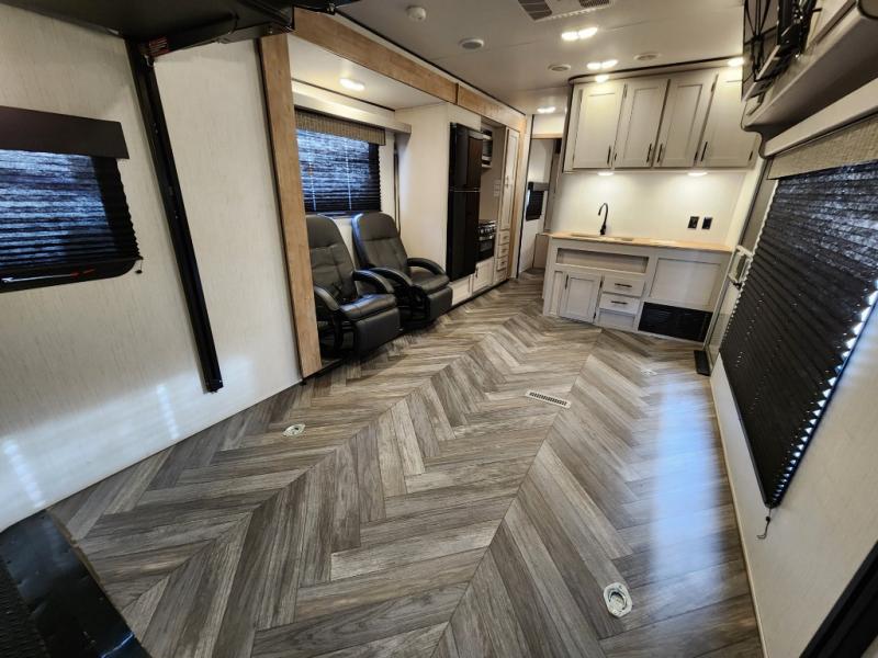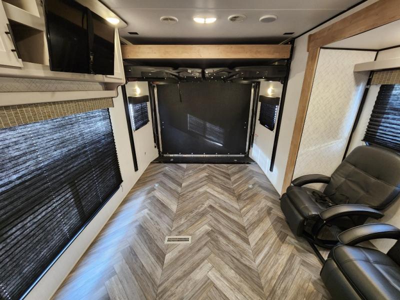 Every one of these Heartland Lithium toy haulers are supercharged and ready to go on any adventure you throw their way! The galvanized rock guard will protect your unit as you drive down the road and the garage tie downs will keep your toys safely in place, plus there are 8' ceilings to fit your toys. A systems control panel, USB charging ports, an outside outlet, and an AM/FM stereo with Bluetooth and MP3 hookup makes life a littler easier and entertaining while camping. The electric rack and pinion slide system creates a deep flush floor to keep you from tripping. The highest rating E-rated tires are ready for the road. The power awning provides maximum protection rain or shine!