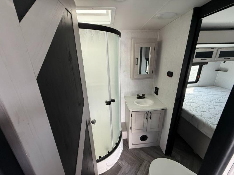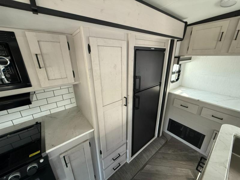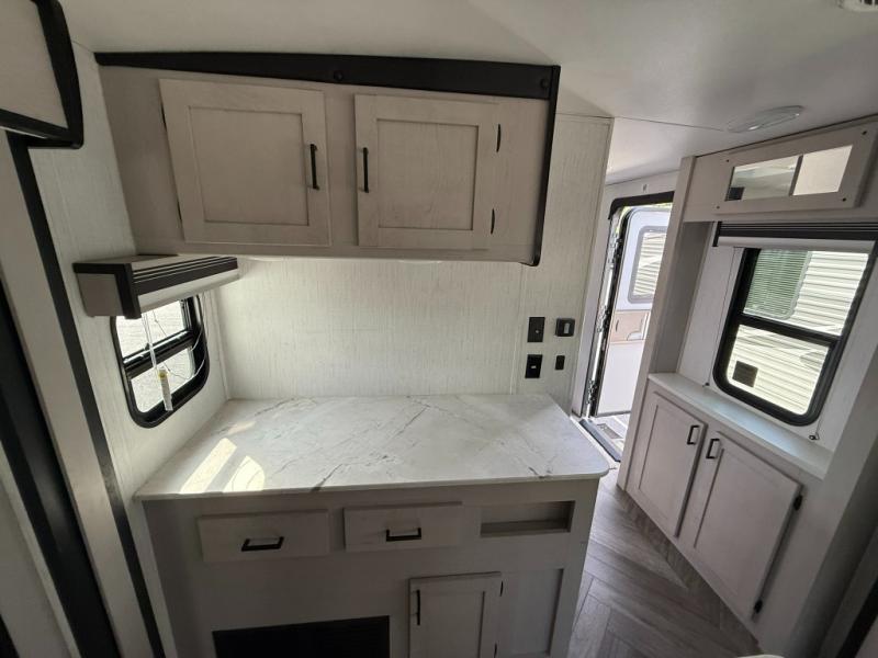 You will not be able to get enough of this Mallard travel trailer! It features a kitchen island to help make your meal prep and clean-up easier and a rear living area with everything you will need for a relaxing time like a sofa, theater seating with cupholders, and an entertainment center. Plus, there is a free-standing table with chairs next to the theater seating for you to play a card game at while you wait for dinner to be ready. You will also enjoy all of the conveniences that the front private bedroom has to offer, like the entrance into the double-entry bath, the king bed, and the large walk-in wardrobe with sliding glass doors so that you can see how well you've dressed each day! You will also find washer and dryer prep here too if plan to go full-time!