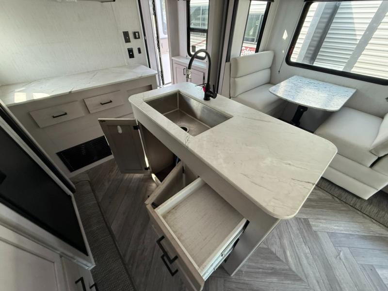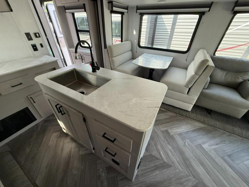 The Heartland Mallard travel trailer is quite impressive with its innovative features! The flip-down exterior steps and glow-in-the-dark graphics are some of the top exterior features, and the all-new Master Chef kitchen with Infinity edge countertops and a stainless steel undermount sink is one of the top interior features that will make camping life easier. The forced-air heated and enclosed underbelly is a great feature that protects your trailer from the outside weather, and the Wide Traxx axle system, leaf spring suspension, E-Z lube hubs, and aluminum rims all work together to give you a great ride to the campsite. The Mallard has also been prepped for a solar panel, Wi-Fi, and a back-up camera, and it also has a cable-ready hook-up.