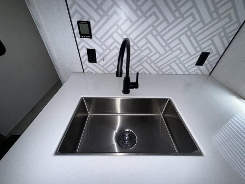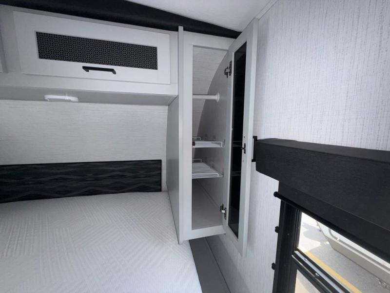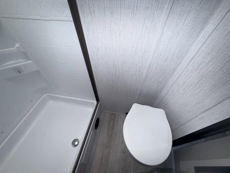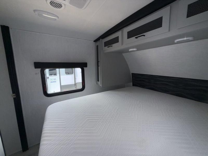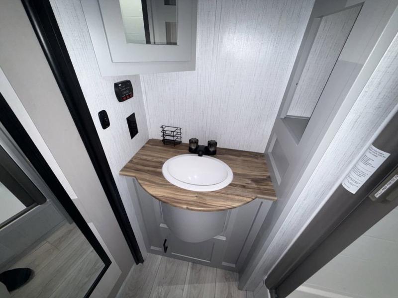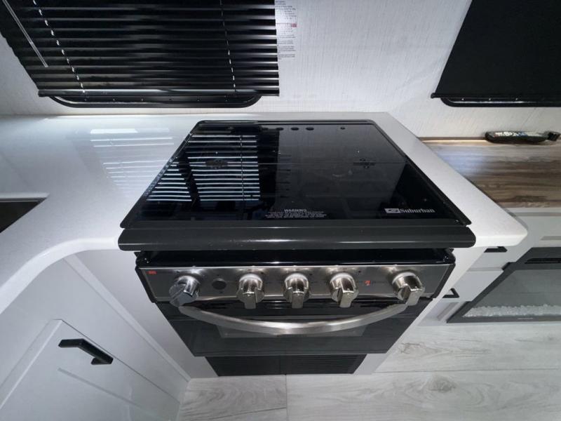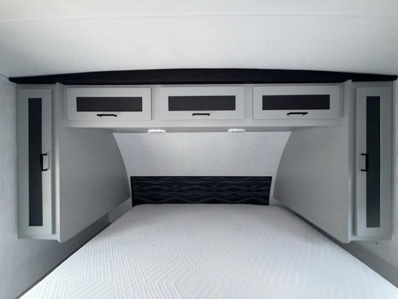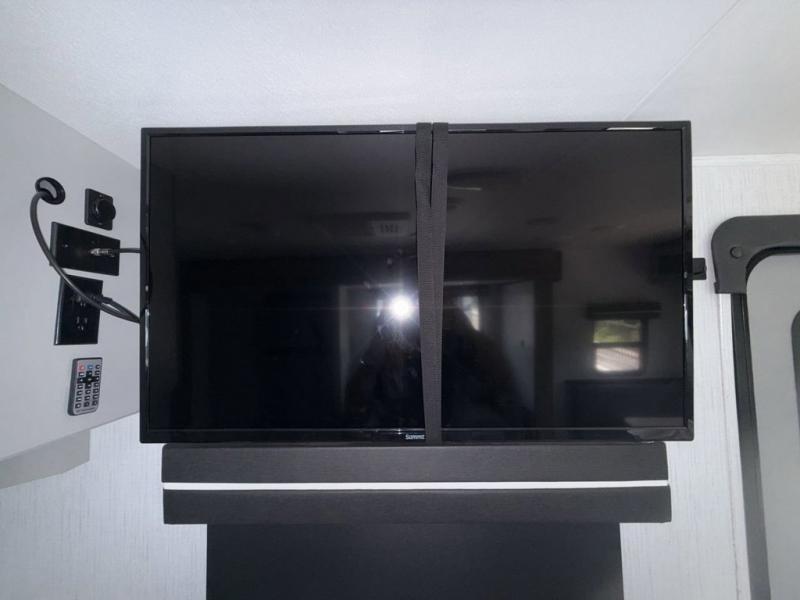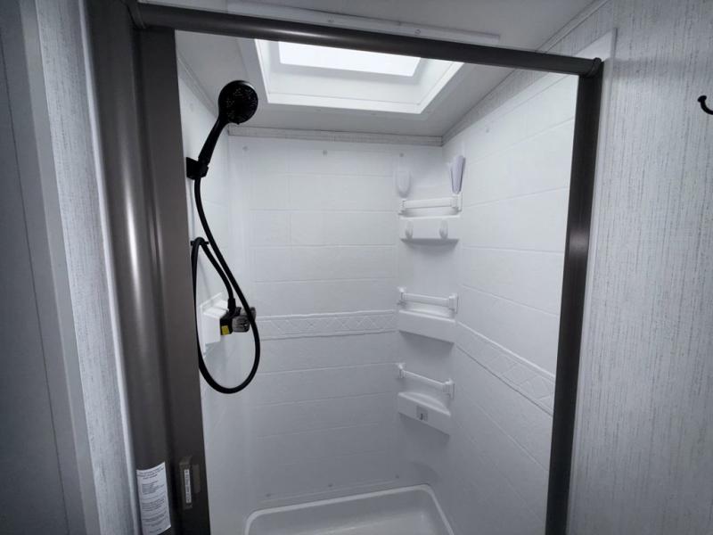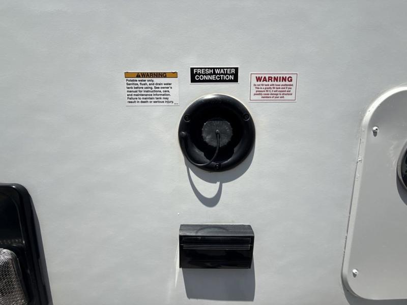 You and your spouse will love camping in this travel trailer! It features a front private bedroom with a king bed to lay your head on at night. Freshen up each morning in the full bathroom with a shower that has a skylight above to bring the outdoors inside. The chef can prepare their best home cooked meals with the four burner cooktop, conventional oven, and 10.7 cu. ft. refrigerator. Enjoy all of your meals and play games at the rear U-shaped dinette, plus it can transform into an extra sleeping space for an extra guest or two depending on their size. With theater seating and an entertainment center with a fireplace, you can have a truly relaxing evening indoors!