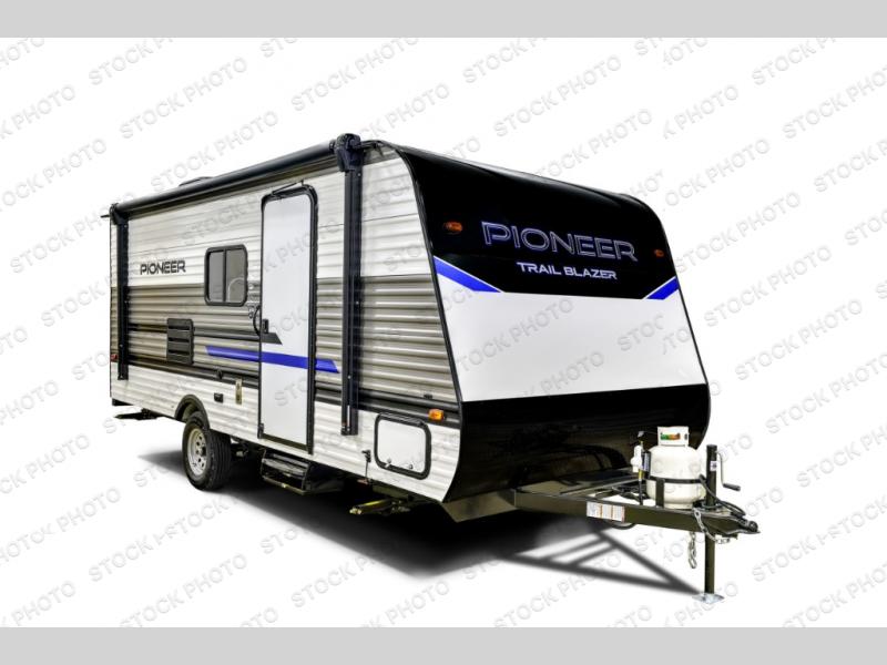 With any Pioneer dual axle travel trailer or toy hauler by Heartland, there is a hybrid aluminum front profile with aerodynamic radius front cage structure for better wind and water deflection, adding strength and reducing tongue weight. The Pioneer Power Pack provides power stabilizer jacks, a power tongue jack and a power awning, plus the EZ Camp package gives you a black tank flush, an outside shower with hot and cold water, LP quick connect, an outside TV hookup and a flip-down secure step with an XL handle. The interior offers solid surface countertops and a large stainless steel sink with high rise faucet in the kitchen, full linoleum on the main floor and no carpet in slide outs, cable TV hookup with RG6 coax cabling, and crossflow windows allowing the fresh air to circulate through the extra large windows. Make your selection today!