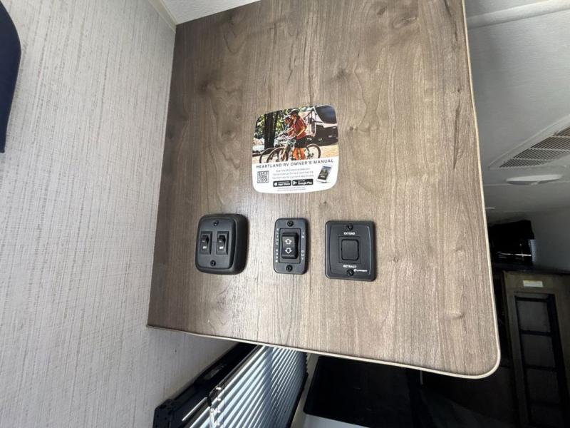 With any Pioneer dual axle travel trailer or toy hauler by Heartland, there is a hybrid aluminum front profile with aerodynamic radius front cage structure for better wind and water deflection, adding strength and reducing tongue weight. The Pioneer Power Pack provides power stabilizer jacks, a power tongue jack and a power awning, plus the EZ Camp package gives you a black tank flush, an outside shower with hot and cold water, LP quick connect, an outside TV hookup and a flip-down secure step with an XL handle. The interior offers solid surface countertops and a large stainless steel sink with high rise faucet in the kitchen, full linoleum on the main floor and no carpet in slide outs, cable TV hookup with RG6 coax cabling, and crossflow windows allowing the fresh air to circulate through the extra large windows. Make your selection today!