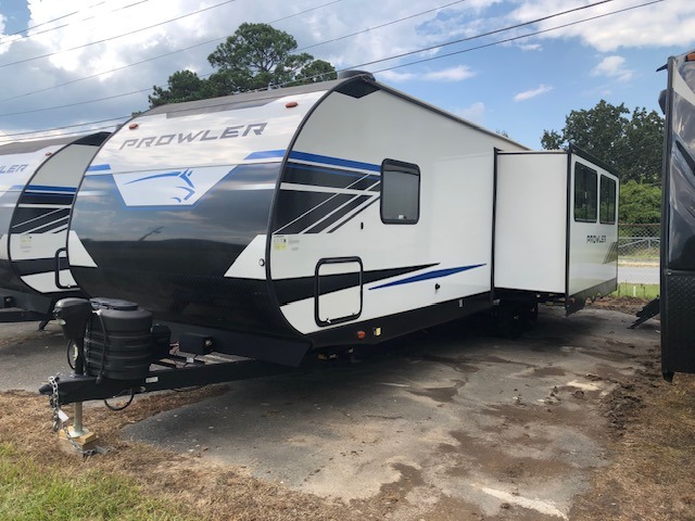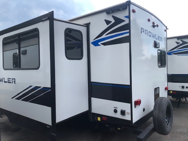 Get ready for comfortable and easy camping with the Prowler travel trailers by Heartland. These models feature durable construction with a performastructure aluminum front wall, cambered structural steel I-beam frame, and a fully walkable roof. The MEGA bright pass-through storage features 52 cu. ft. of exterior storage with mega sized access doors, LED lights, and a finished interior to keep your gear secure. You'll fall in love with the at-home kitchen that includes Duralast countertops, a residential refrigerator, plus a stainless steel double bowl undermount sink for easy clean-up. These travel trailers also feature panoramic windows, an EZ clean interior, USB charging ports throughout, and many more comforts! Don't let the Prowler travel trailers slip away. Choose your favorite floorplan today!