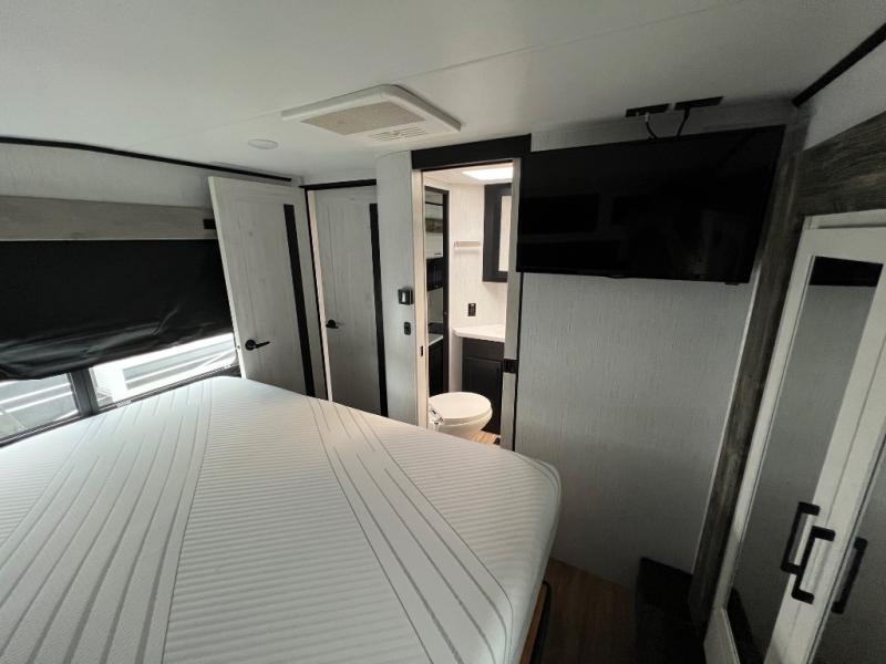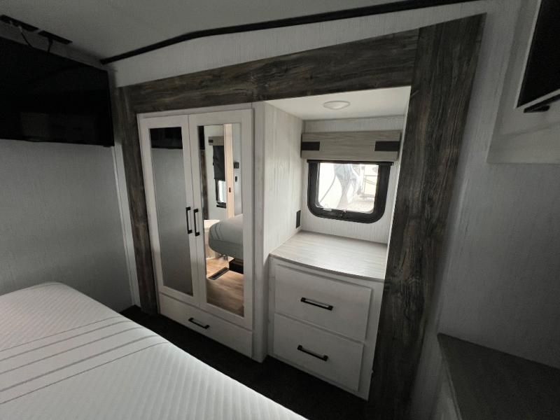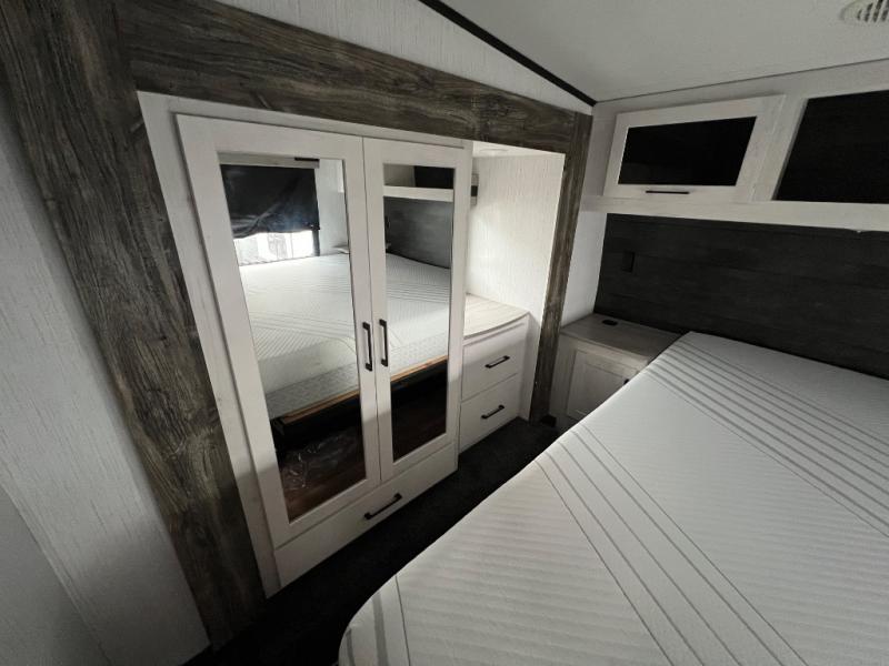 With any Road Warrior toy hauler fifth wheel by Heartland there is a heated, enclosed underbelly for four seasons of travel, MORryde 3000 suspension for a better tow, and hydraulic 6-point level up for easy setup. You will also love the 100-watt solar panel with an inverter prep for off-grid camping. The garage allows you to safety take your toys with you thanks to the professionally installed tie downs, and the cold crack resistant flooring is durable for all your adventures. Each model also includes residential style furniture with a USB station, a Zero Gravity garage door, and solid surface countertops. Choose one of these luxury crossovers and launch your adventurous side on its next journey!