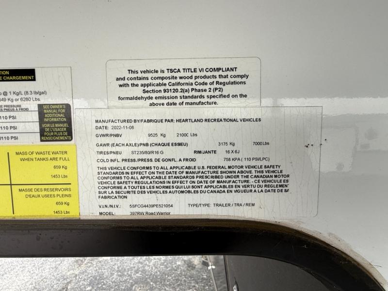 Used 2023 Heartland Road Warrior 397 Toy Hauler Fifth Wheel