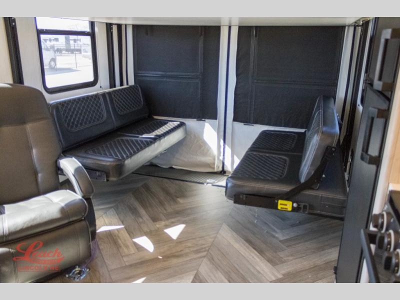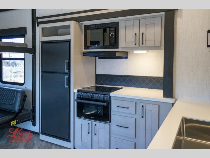 With any Torque toy hauler travel trailer or fifth wheel by Heartland you will find Azdel laminated sidewalls, a wide-body design, and rack and pinion slide outs that fully support the slide out floors. Each drive to the lake will be smooth thanks E-rated tires and E-Z flex suspension with shock absorbers, and there are professional installed tie-downs to keep your toys secure. Head inside to find a culinary kitchen workspace with full-height shaker cabinetry, the largest kitchen countertops in the industry, fuel and oil resistant diamond plate TPO rubberized flooring in the garage, and many more comforts. There are also available options that can be added to further customize your Torque toy hauler, such as an LCD TV, a generator, a ramp door patio, and more!