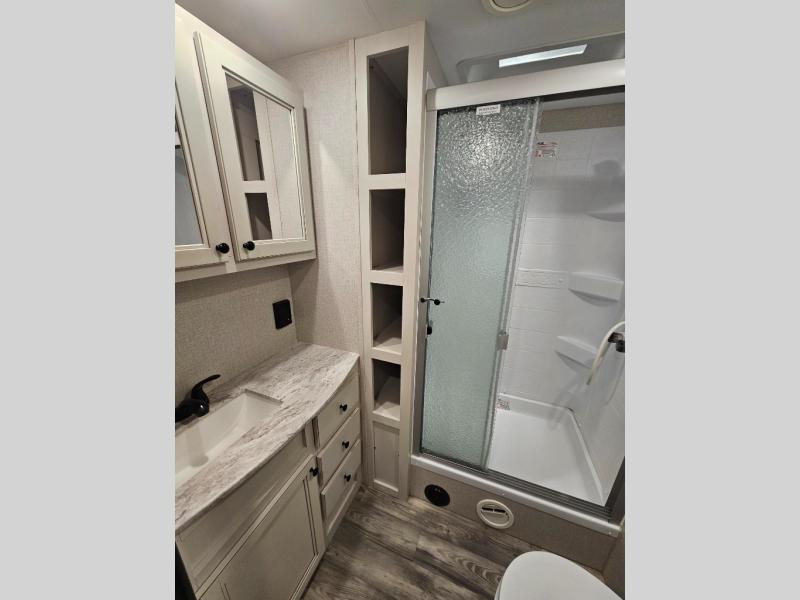 Start camping the convenient way in any one of these Highland Ridge RV Mesa Ridge S-Lite travel trailers! They are lightweight but still packed full with handy features and a sturdy construction with Tuffshell walls and a PVC roofing membrane. Their thermal seal consists of an enclosed and heated underbelly, as well as a fully insulated roof. The mandatory Customer Convenience package includes a roof mounted 15,000 BTU A/C unit to keep you cool on the hottest summer days, JBL Aura Cube stereo with Bluetooth and miZONE technology, and JBL Premium indoor and outdoor multizone speakers so you can crank up the tunes. You will also appreciate the kid and pet friendly vinyl flooring throughout, the laundry chute in the bedroom, and the electrical outlets and USB ports in the master bedroom to charge your electronics while you recharge too. Come find your favorite model today!