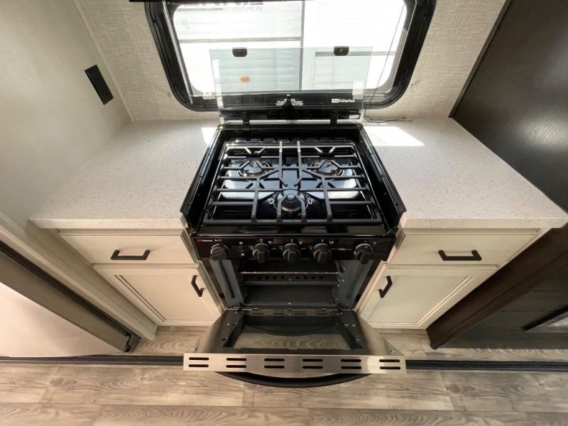 With any Highland Ridge Open Range travel trailer, the 100" wide body frame and the ACCU-SLIDE slide system with 42" deep 4-corner compression offer more interior space. Inside, you will also enjoy residential vinyl flooring, hardwood cabinet doors, and two air conditioners with quiet residential return air. The exterior equipment includes Equa-Flex axle suspension, self-adjusting electric brakes, and the Norco 5.1 stabilizer system with BAL lock arms. You will also enjoy the Four Season package that offers ducted heat to underbelly with cold air return, an enclosed exterior docking station, a heated and enclosed underbelly, and a high performance furnace to mention a few highlights.