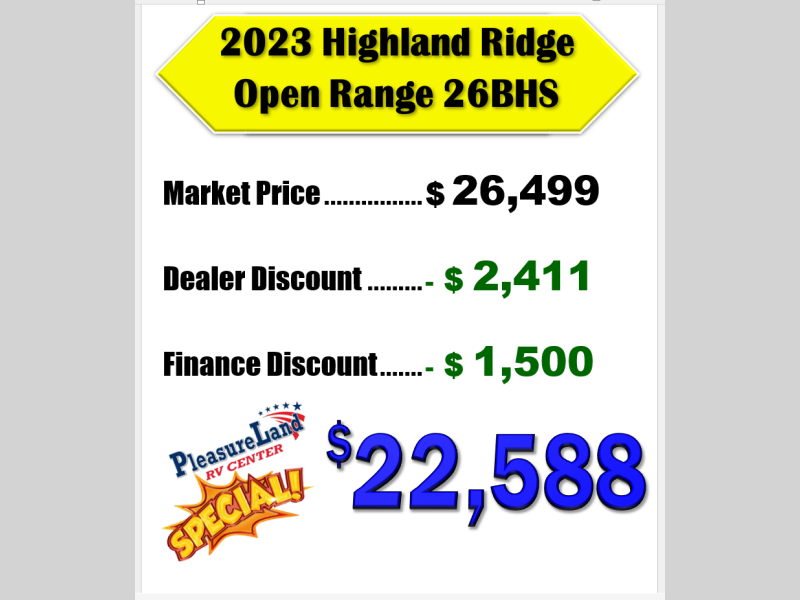Used 2023 Highland Ridge RV Open Range Conventional 26BHS Travel Trailer
