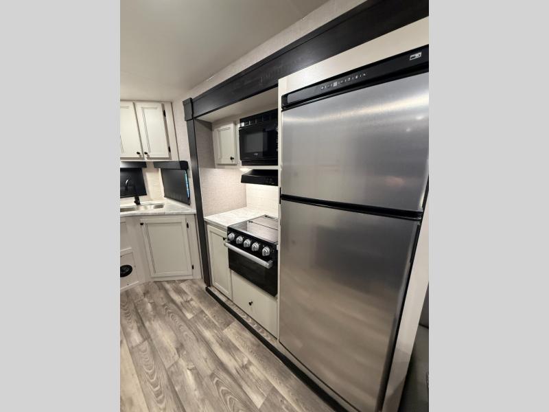 Each one of these Highland Ridge RV Range Lite travel trailers maximize their interior space while staying lightweight thanks to the TuffShell fiberglass walls! The residential floor slides create more walking around space, and the residential vinyl flooring throughout makes them kid and pet friendly. A few construction features you will appreciate include a fully-walkable roof, a thermal seal which means the underbelly is enclosed, heated, and insulated, and a fully insulated roof with a PVC roofing membrane. Plus, there is an exterior grill hookup quick connect port, self-adjusting electric brakes to help you safely arrive, and an oversized pass-through storage area with motion lighting. Come find your favorite one today!