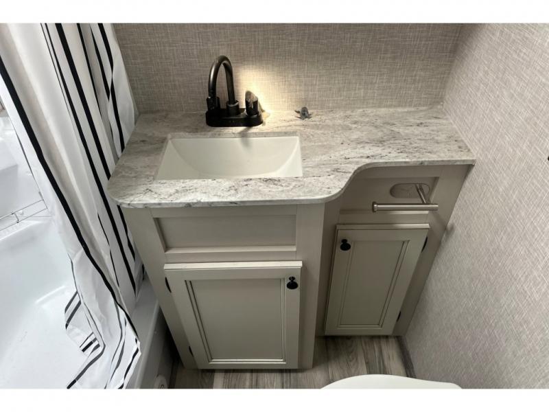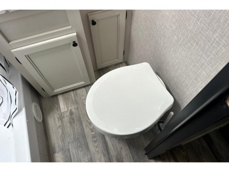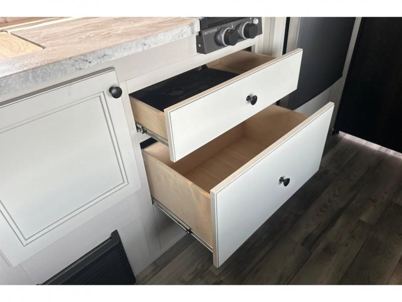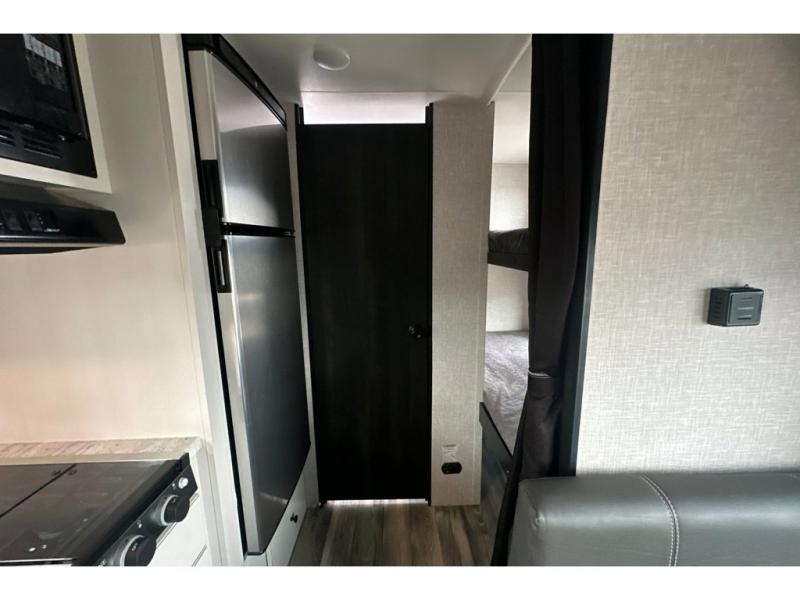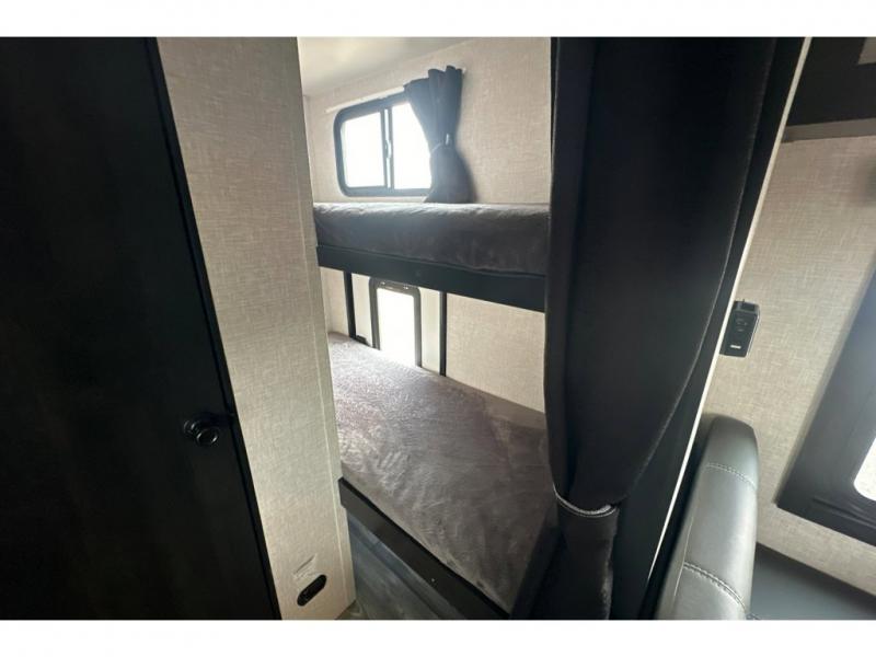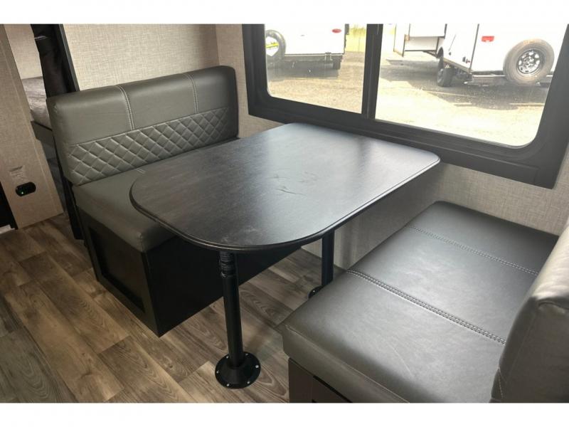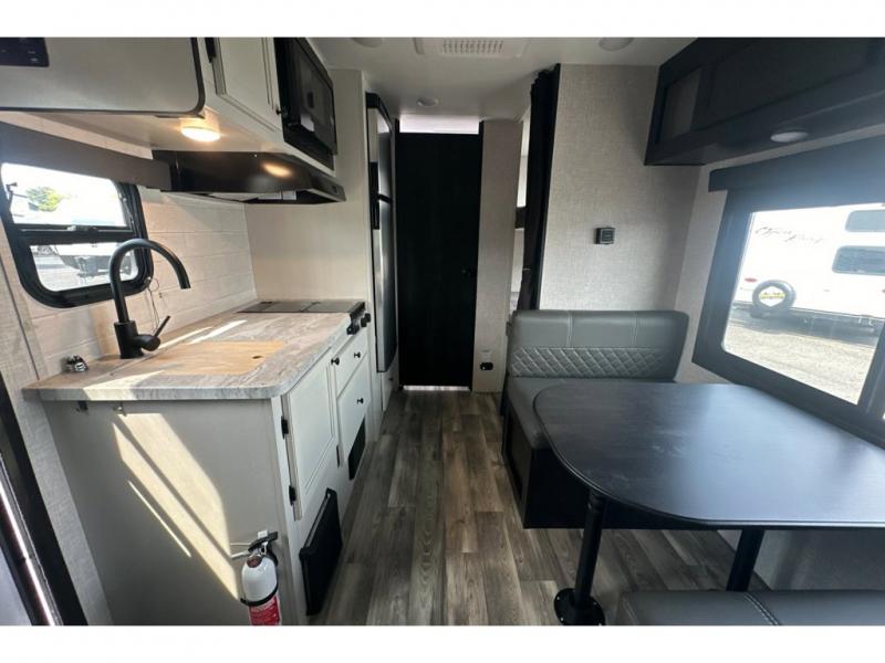 You are going to love this Range Lite Air travel trailer because it is easy to tow, yet it provides you with sleeping space for five with its bunk beds, booth dinette, and front bed. You'll have exterior storage that you can use to bring along fun equipment for everyone to play with, and the 12' power awning will protect you from excessive sun exposure while you're outside. If you want to spend as much time outside as possible, you can even use the exterior griddle to prepare meals. The rest of your favorite appliances are inside in the kitchen where you will find the convection microwave, a two-burner recessed range, and a refrigerator. You also have a full bathroom in the interior where you can take showers and get ready each morning underneath the skylight. The residential vinyl flooring makes this trailer kid- and pet-friendly.
