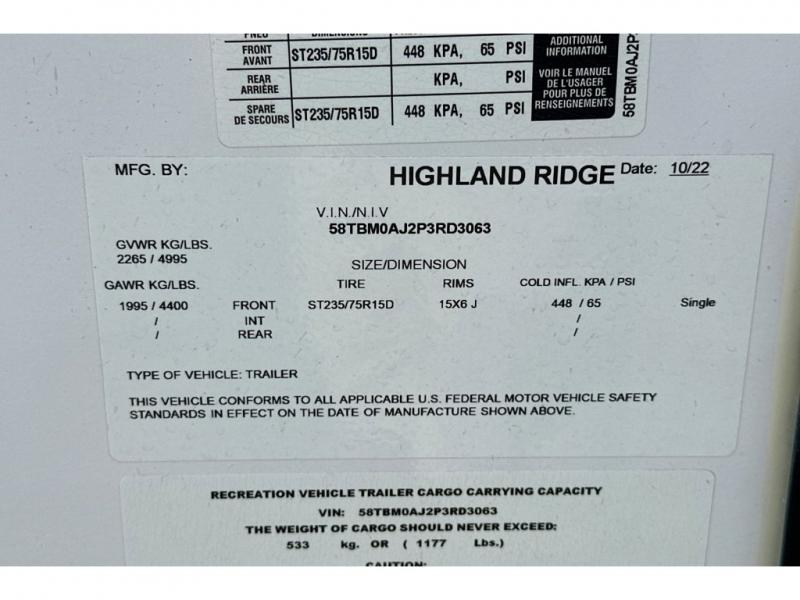 It doesn't take much effort at all to get the Highland Ridge Range Lite Air travel trailer to its next destination! These trailers have been constructed with a Thermal Seal which includes an enclosed and insulated underbelly and fully insulated roof with a PVC roofing membrane. The 15" nitrogen filled off-road radial tires with aluminum rims and rubber torsion axle with increased ground clearance adjustments help you get to your location, and the power tongue jack and stabilizer jacks help set-up run smoothly. The Magnum Roof system is a reliable and durable product that will withstand years of adventures. You also have the ability to add an optional off-grid solar package that comes with a 200W panel and 30AMP controller.