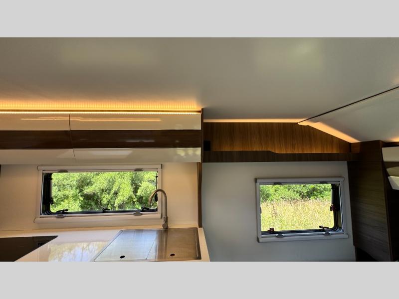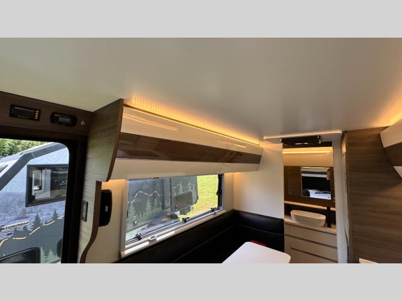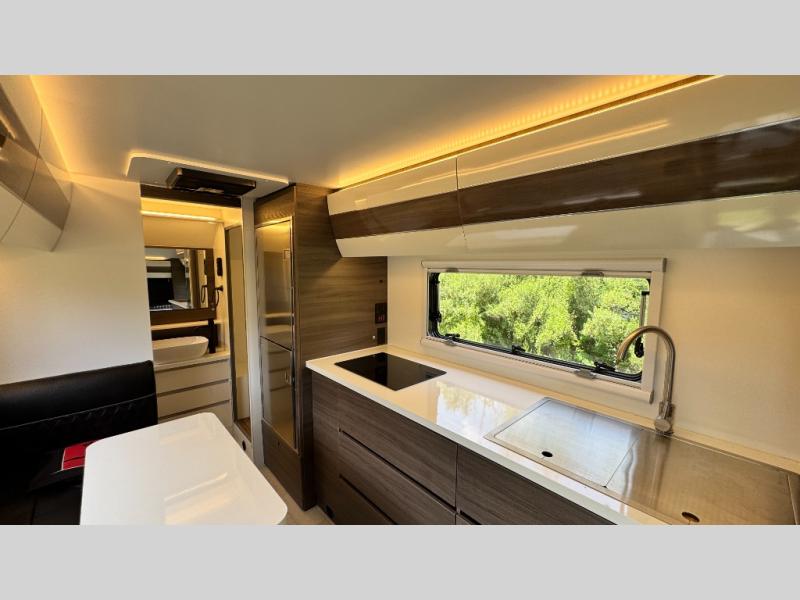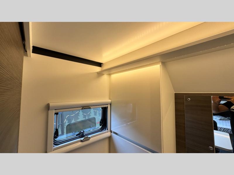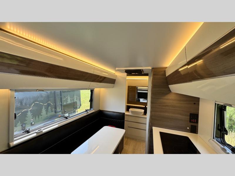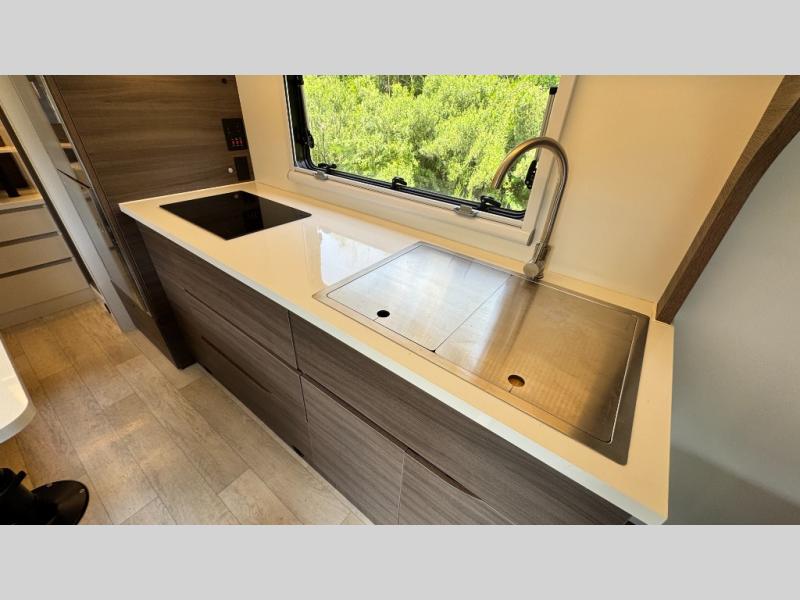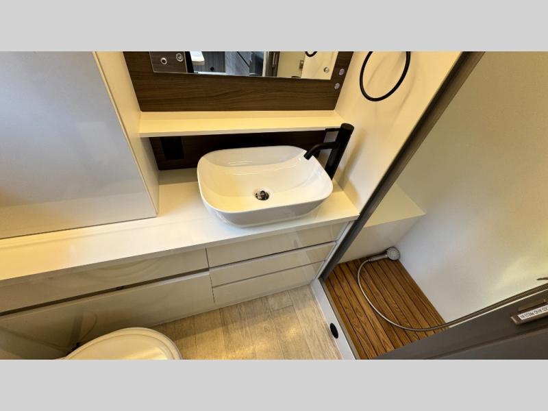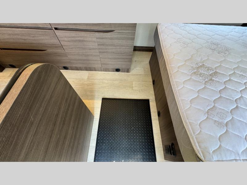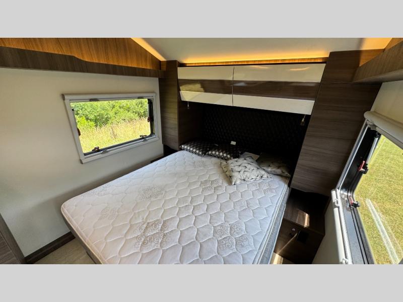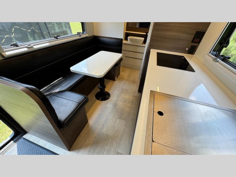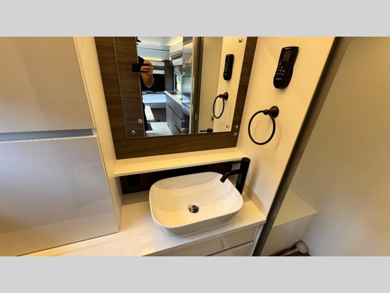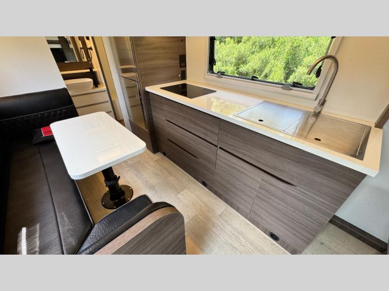 Make each camping trip count in this travel! When you get to your destination you can unload your gear from the exterior pass-through storage, then set up the 22' 6" batwing style awning. There is a full kitchen with a cooktop inside to prepare lunch on, plus a 6.9 cu. ft. refrigerator for food storage and a sink to clean up. Head out to find a trail or two, then come back to clean up in the full rear bath that includes a shower and a dry flush toilet, which eliminates the need for a black tank. The full size walk-around bed (RV full) will provide a great night's rest, and there is overhead storage space on each side of the bed for convenience.