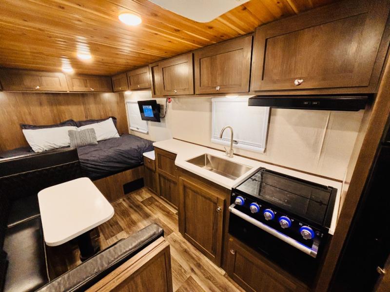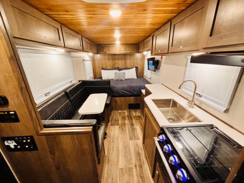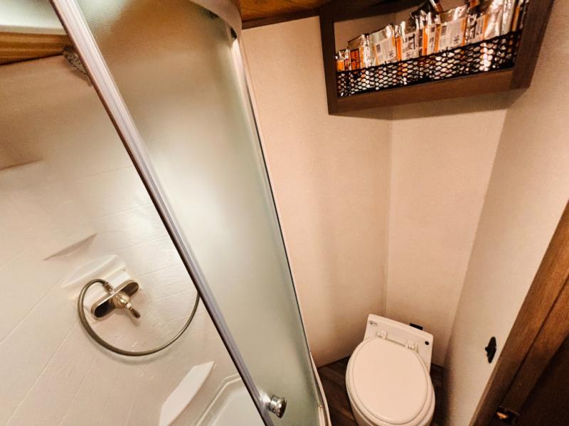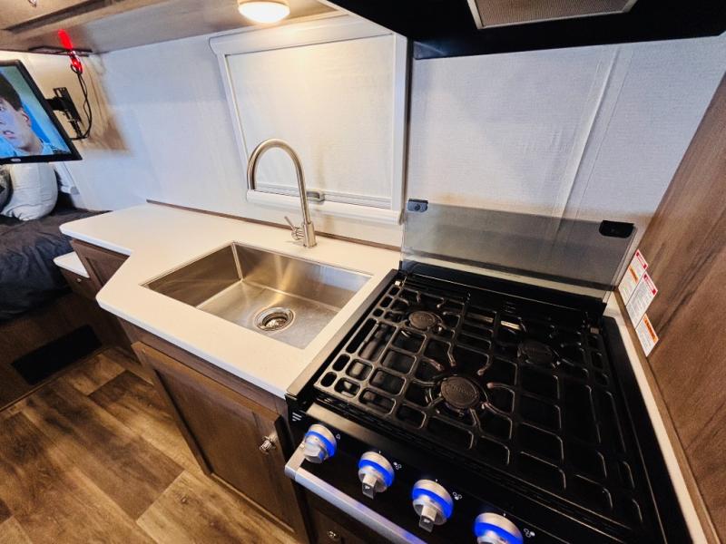 Head off-grid with this travel trailer! It features a full front bathroom with a radius shower to clean up in each morning and a dry flush toilet so you don't have to worry about a black water tank in the back country. Just outside the bathroom is a closet and a 10 cu. ft. refrigerator to keep your perishables fresh. After you have prepared a delicious meal on the three burner cooktop, you can head to the convertible booth dinette to enjoy it there then play a card game or two. The rear full bed is stationary and offers a comfortable nights rest!