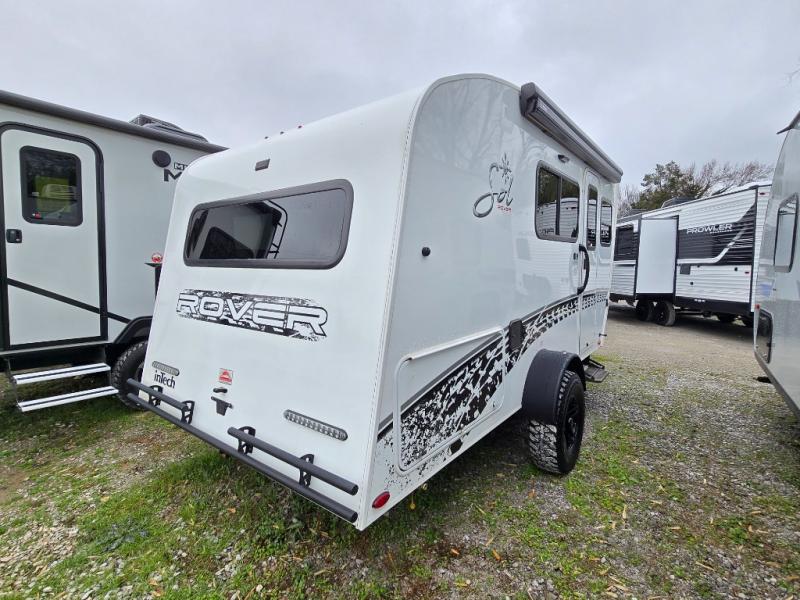 With any Sol travel trailer by inTech RV you will find strong, durable construction consisting of lightweight aluminum that is easier to tow and resists rust, water, and dents. The Tilt-Forward Design creates more space inside so you can stretch out, and the panoramic windshield gives a great view of the mountains, ocean, or forest! The elegant interior features tinted windows with shades, Infinity woven flooring, and a stainless steel cooktop and microwave. You will stay comfortable year around since these models include a 13.5 BTU A/C and a 16K BTU furnace. The optional Rover Package can also be added that features rugged decals, off-road tires with a 3" lift, two different color choices to choose from, plus more!