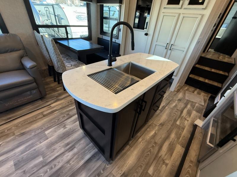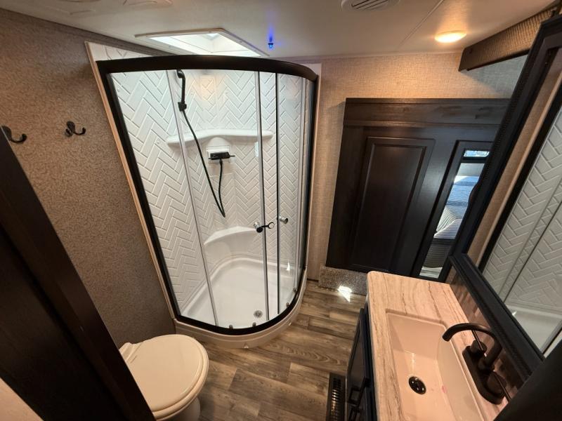 The Jayco Eagle HT fifth wheels and travel trailers include many features to make camping easier than ever! They are lightweight, making them easy to tow, and the JAYCOMMAND "Smart RV" system lets you control your RV's functions from a tablet or smartphone! Each model is constructed with Stronghold VBL lamination, the lightest, yet strongest in the industry, along with a durable Magnum Truss roof system that can withstand 4,500 lbs. The 4 Star Handling Package includes Goodyear Endurance tires, Dexter axles with Nev-R-Adjust brakes and E-Z lube hubs, and a MORryde CRE-3000 rubberized suspension for hassle-free towing. Head inside to find handcrafted and glazed doors, drawers, and trim, residential vinyl flooring, blackout roller shades, plus many more at-home comforts. These models are also pre-wired for an inverter and you can add the optional solar packages to enjoy off-grid camping when the adventure calls for it!
