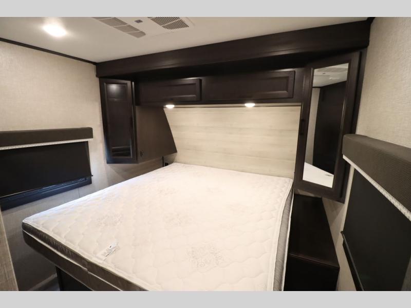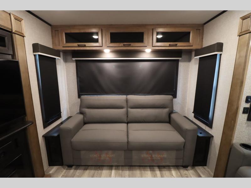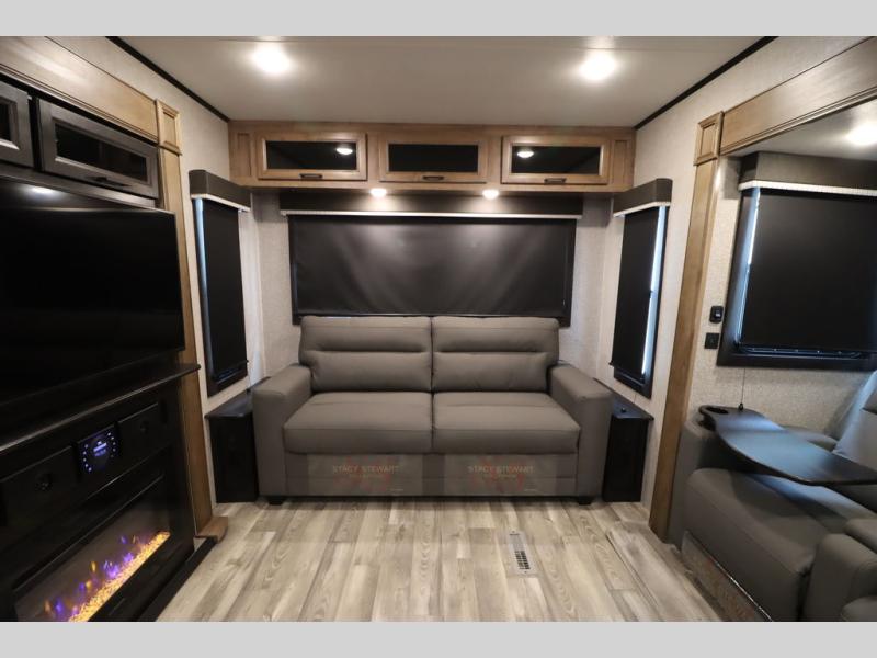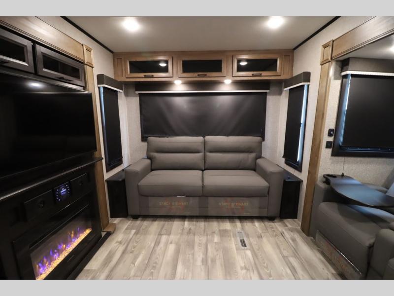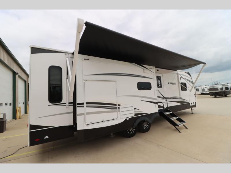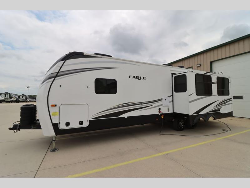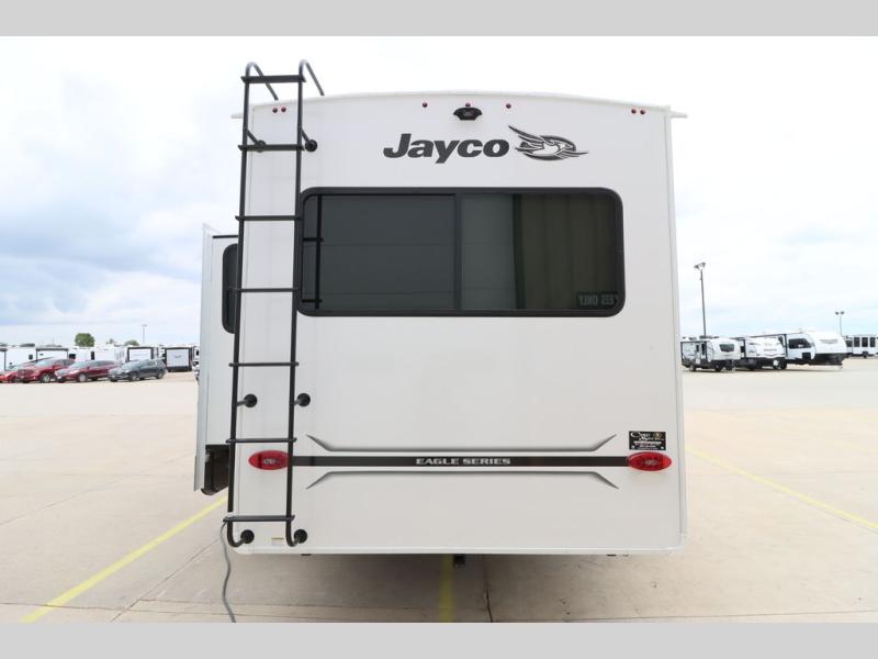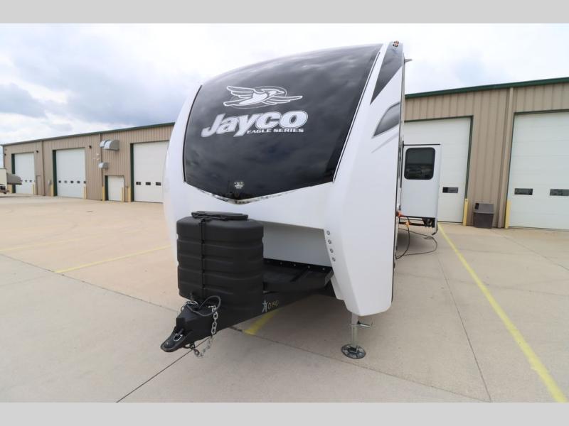 The Jayco Eagle HT fifth wheels and travel trailers include many features to make camping easier than ever! They are lightweight, making them easy to tow, and the JAYCOMMAND "Smart RV" system lets you control your RV's functions from a tablet or smartphone! Each model is constructed with Stronghold VBL lamination, the lightest, yet strongest in the industry, along with a durable Magnum Truss roof system that can withstand 4,500 lbs. The 4 Star Handling Package includes Goodyear Endurance tires, Dexter axles with Nev-R-Adjust brakes and E-Z lube hubs, and a MORryde CRE-3000 rubberized suspension for hassle-free towing. Head inside to find handcrafted and glazed doors, drawers, and trim, residential vinyl flooring, blackout roller shades, plus many more at-home comforts. These models are also pre-wired for an inverter and you can add the optional solar packages to enjoy off-grid camping when the adventure calls for it!