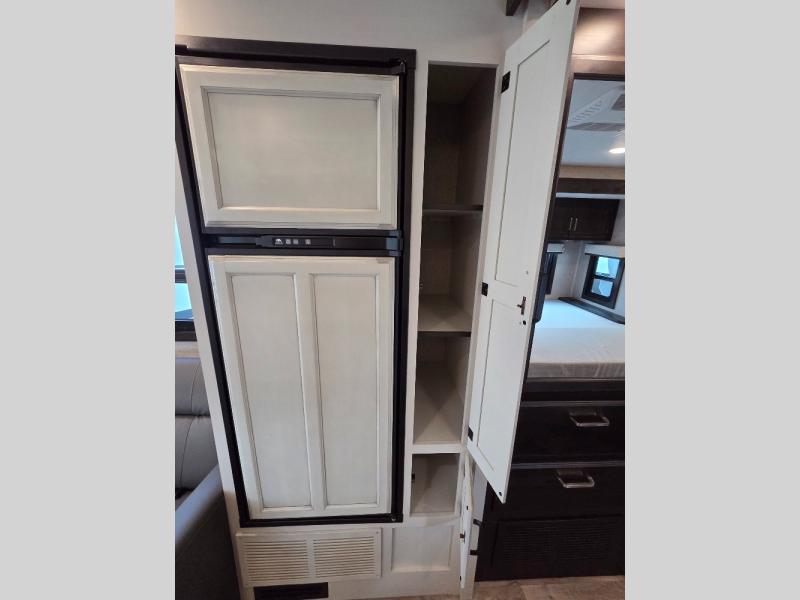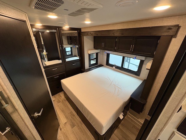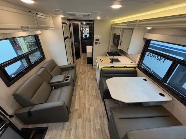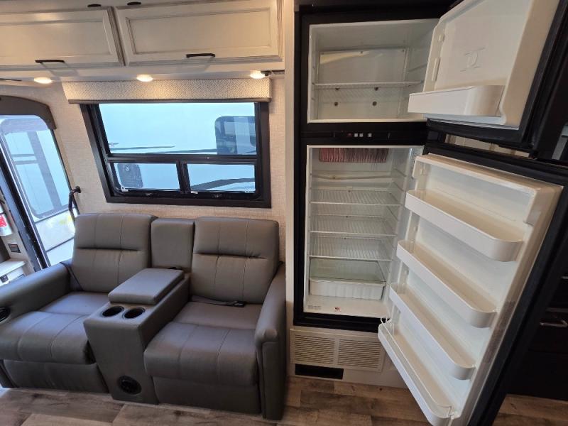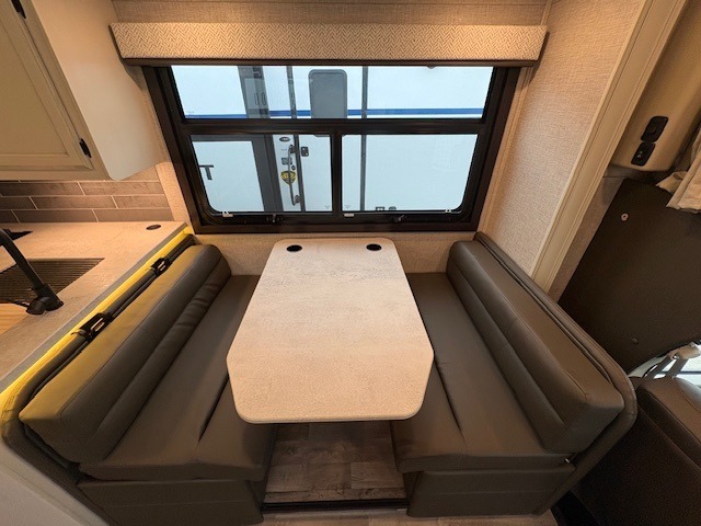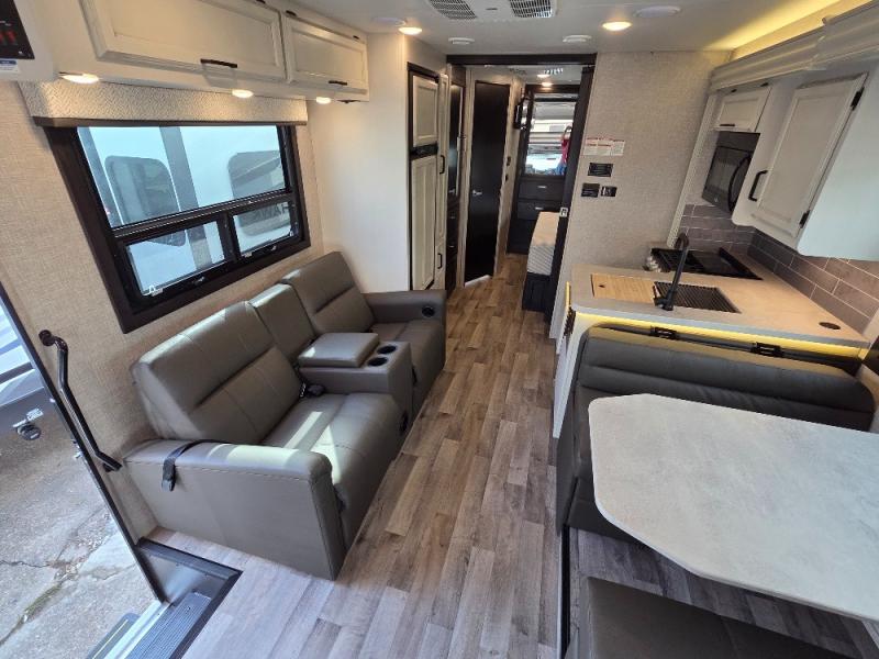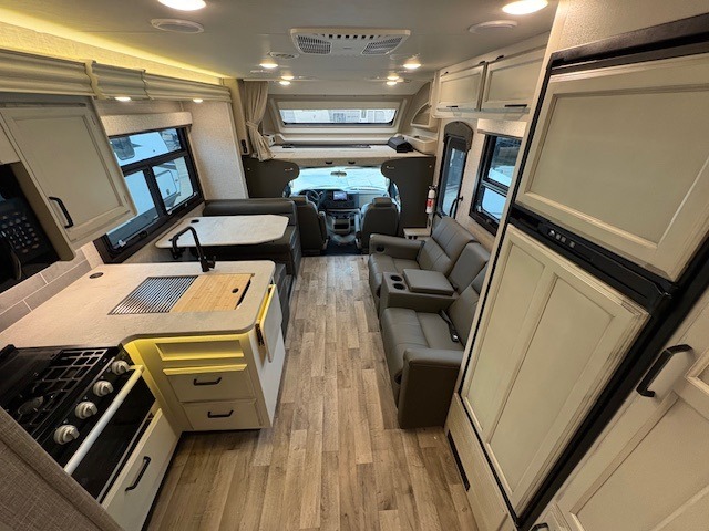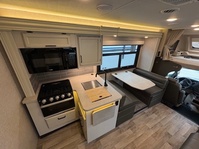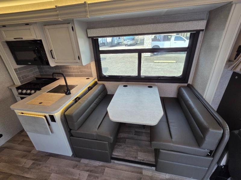 Trips across state lines just got sweeter in this motorhome for five to six. The swivel captain's seats can become a part of the living area once you park, and your guests can get comfortable on the booth dinette or jackknife sofa. There is a cab-over bunk the kids will love, and the LED HD Smart TV will allow you to enjoy movies. The chef of your group can prepare meals on the Furrion all-in-one cooktop and oven, and leftovers can go in the 8 cu. ft. flush-mount double door refrigerator. You will feel right at home in the bedroom suite with its king bed slide out, large wardrobe, and LED Smart TV. Get started on your getaway today in this cozy Class C motorhome!
