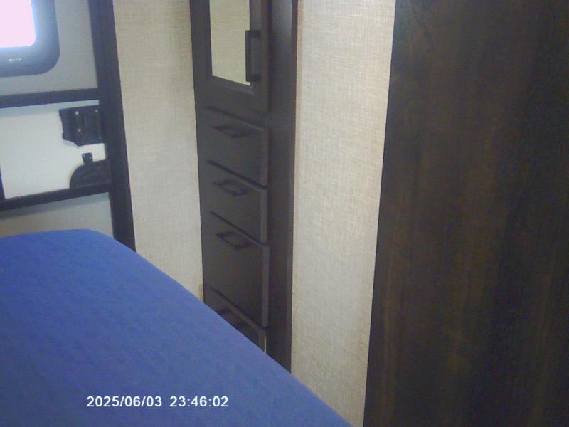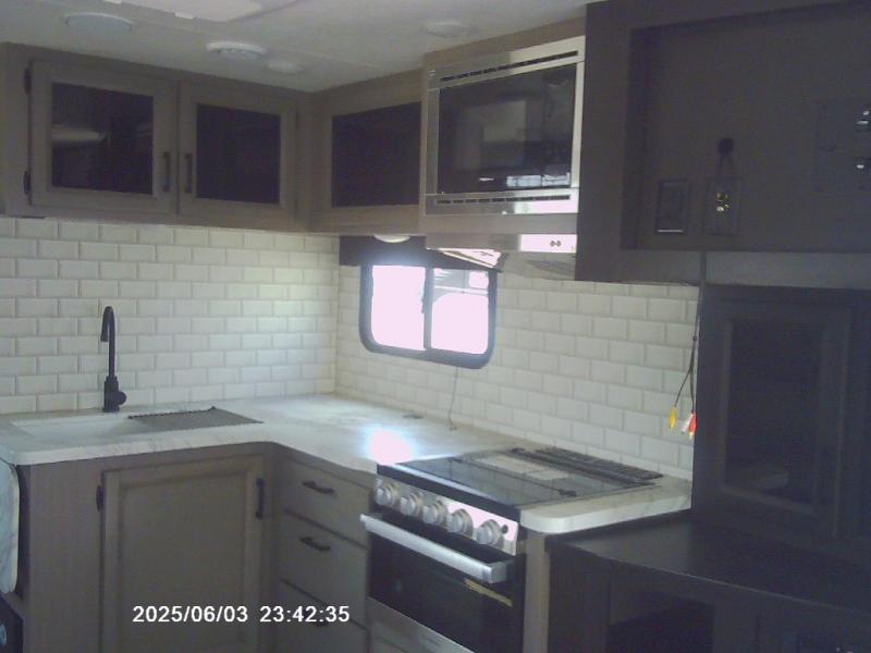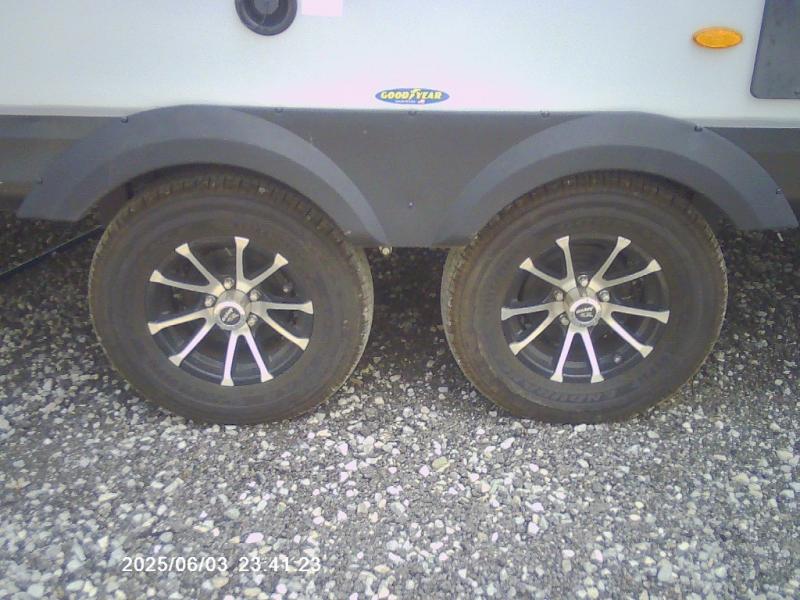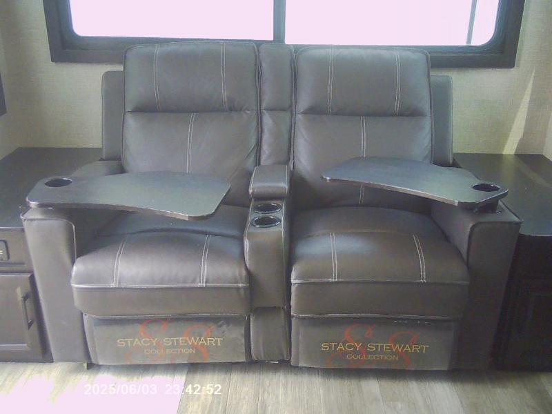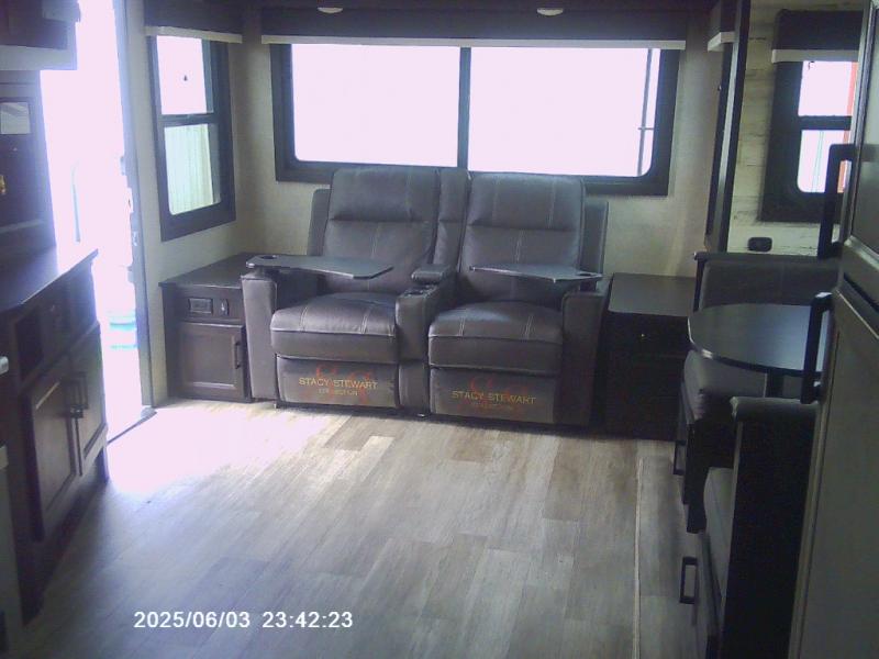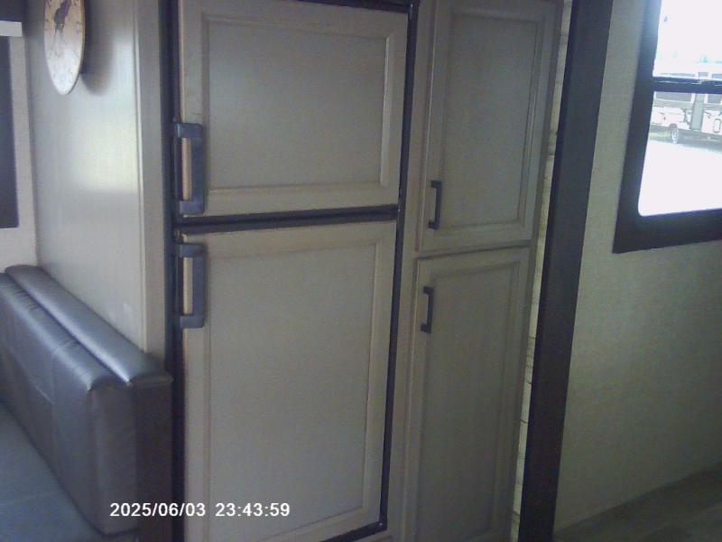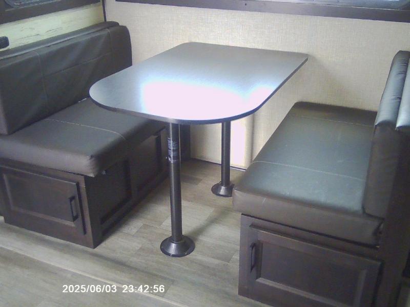 You will experience a smooth flow of traffic in and out of this travel trailer with dual entry doors! The front private bedroom has one of these entrances and a 60" x 75" queen bed with wardrobes on either side to keep your clothes looking nice. The full bathroom has a shower for you to freshen up in each morning and a linen closet to keep your towels close. You will appreciate all of the countertop space to prepare your meal and cook it on the three burner cooktop then enjoy it at the booth dinette. If there happen to be any leftovers then you can store them inside the 8 cu. ft. refrigerator. The rear theater seating comes with lights and trays to set your bowl of popcorn or you can choose to switch it out for the optional tri-fold sofa so an extra guest could stay the night.