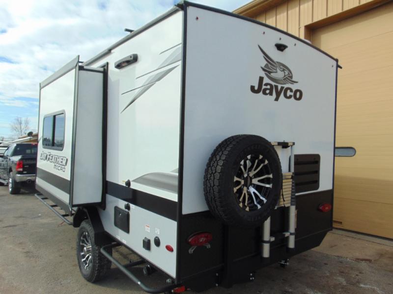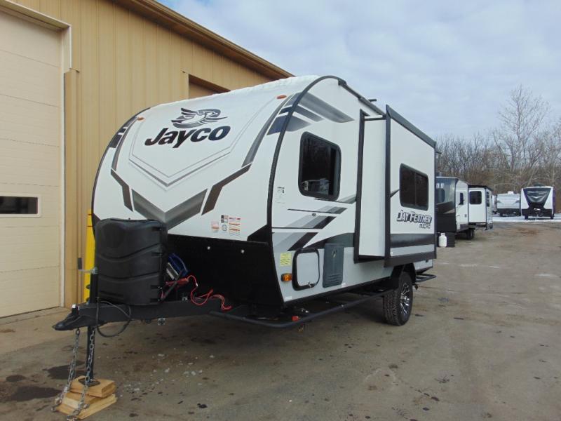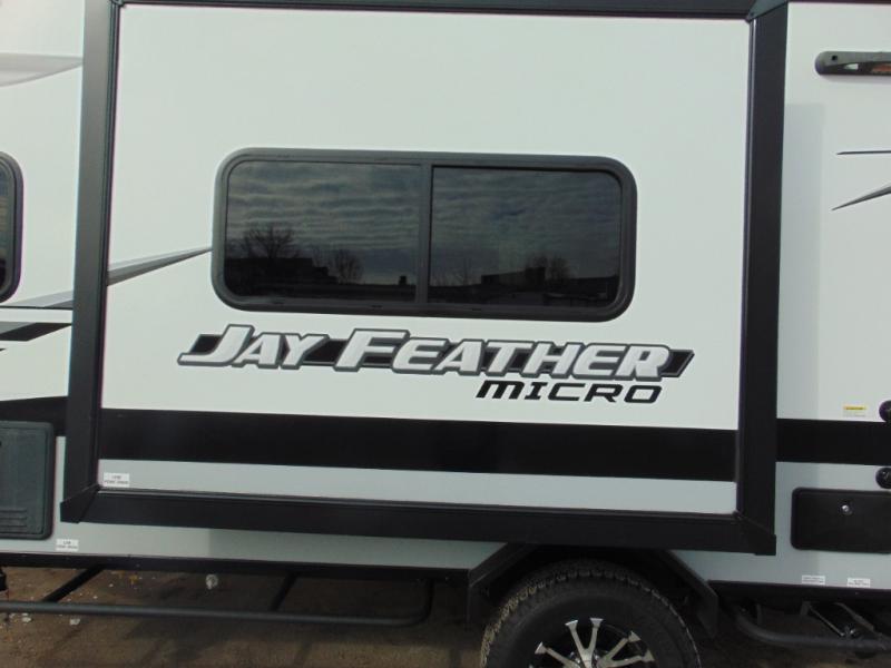 The Jay Feather Micro travel trailers by Jayco are for those looking for lightweight camping, while not sacrificing comfort and convenience. The modern retro graphics package is sure to be eye-catching, and the newly designed interiors will have you feeling right at home. Each model features an American-made frame with an integrated A-frame, Goodyear off-road tires, plus a new Rock Solid stabilizer system for a more stable camping experience. Some of the interior comforts you will enjoy are the residential vinyl flooring with cold crack resistance, screwed and glued cabinetry, and LED lighting. Adventure is waiting for you with a Jay Feather Micro travel trailer. Choose your favorite floorplan today!