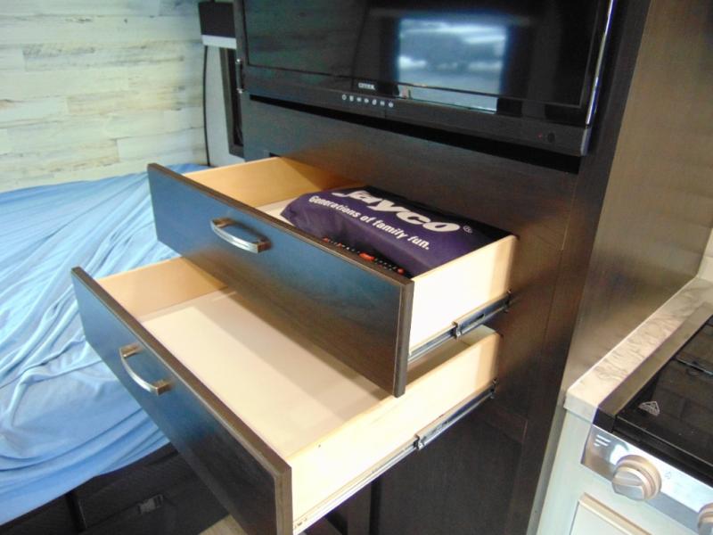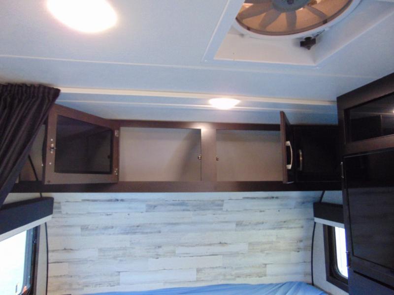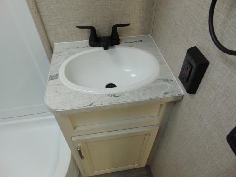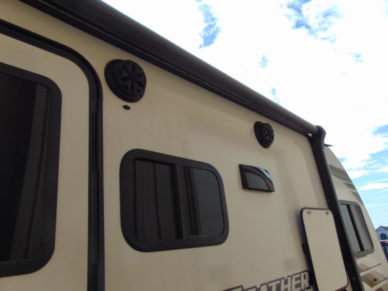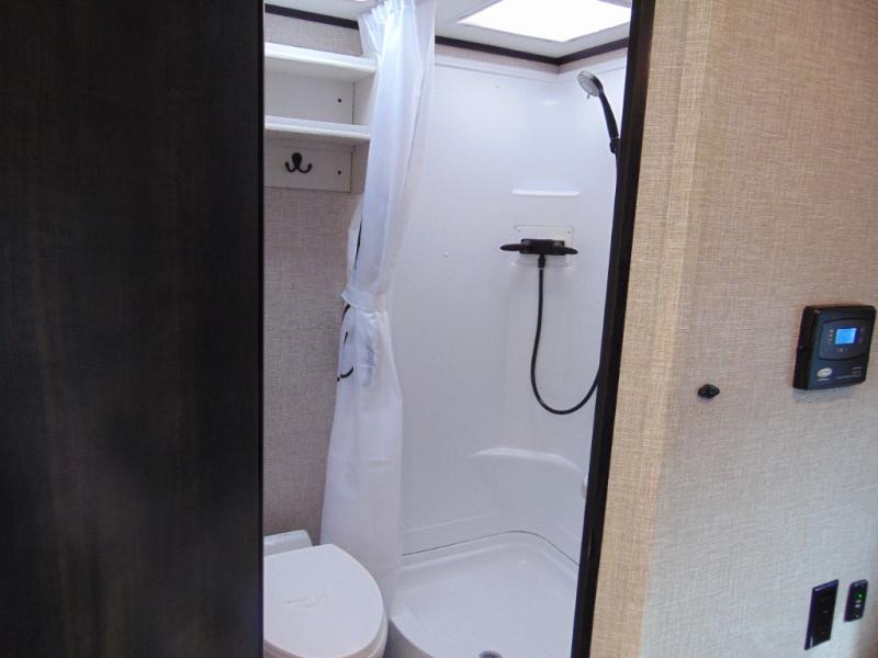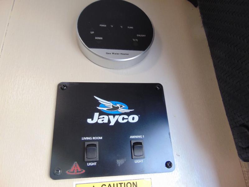 Weekends at the lake are made comfortable in this single slide out travel trailer. You will enjoy your own 54" x 80" front bed so you don't have to sleep on the floor, plus there is a jack-knife sofa if you have an overnight guest. The full bath features a radius shower with a skylight, plus plenty of storage space for your medicines and toiletries. This model includes a microwave oven and a three burner cooktop to prepare meals each day, and an 8 cu. ft. 12V refrigerator for perishables. You will also find an exterior refrigerator for cold drinks, plus a Jayport system with an LP quick connect.