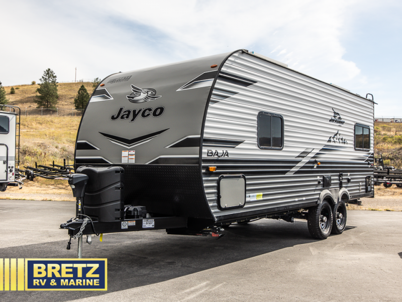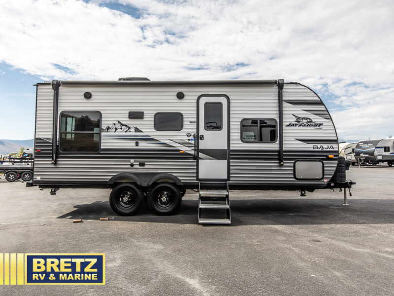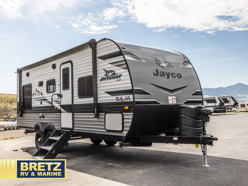 These Jayco Jay Flight travel trailers have been a family favorite for years with their lasting power and superior construction. An integrated A-frame and magnum truss roof system holds them together. When you tow one of these units you're towing the entire unit and not just the frame. With dark tinted windows, you have more privacy and safety. The vinyl flooring throughout will be easy to clean and maintain too. Come find your favorite model today!