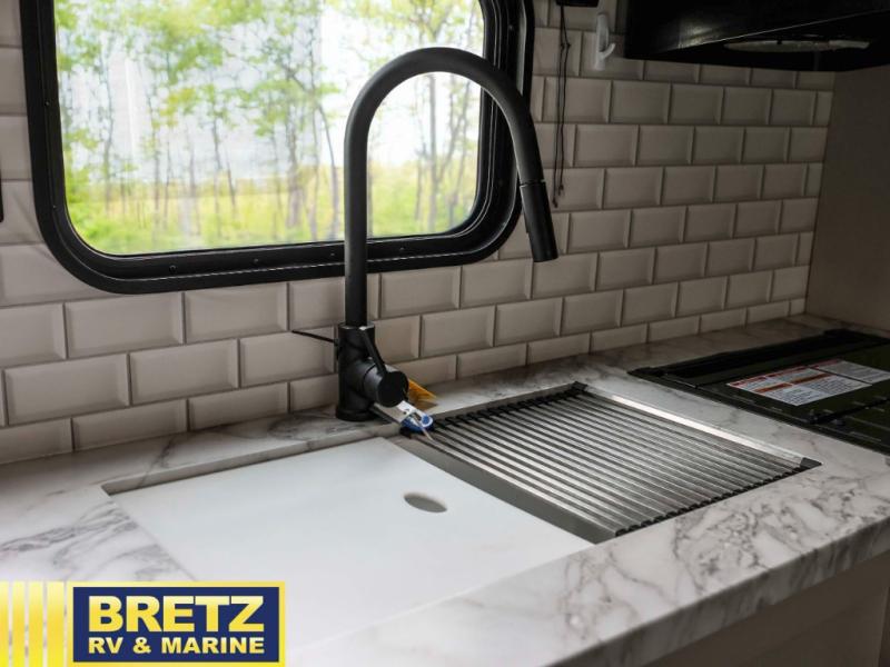 Get ready for family fun or a friend's weekend at the campgrounds in this trailer! This trailer offers full kitchen amenities including a pantry for snacks and such, plus a full rear corner bathroom for privacy and includes a shower. When you need a break, the semi-private bedroom up front offers a queen bed, dual wardrobes and a curtain to close, and the double size bunks offer a curtain to close as well. There is a 13' power awing with LED lights for you to enjoy this outdoor space into the night, plus exterior storage for your outdoor games and gear.